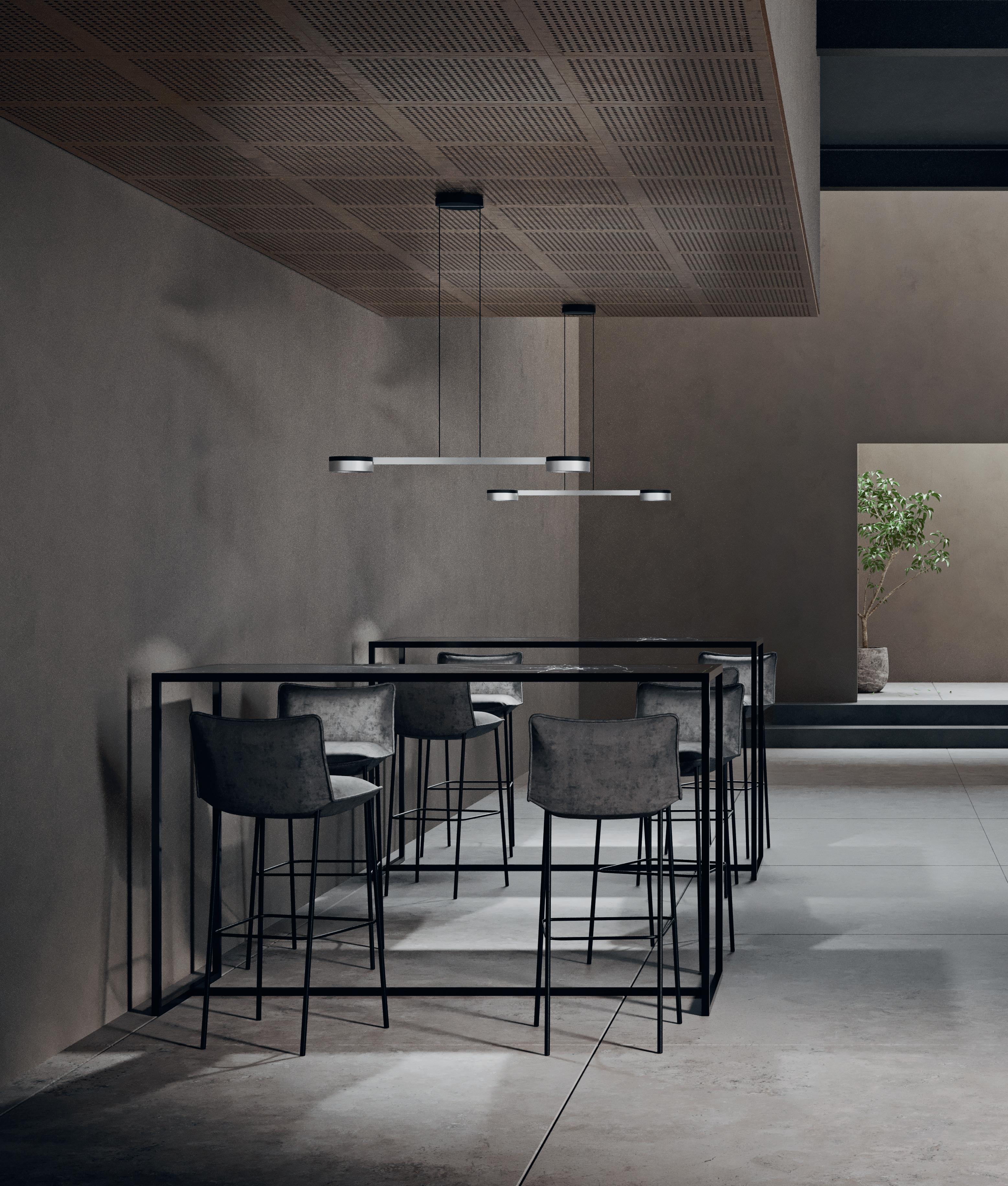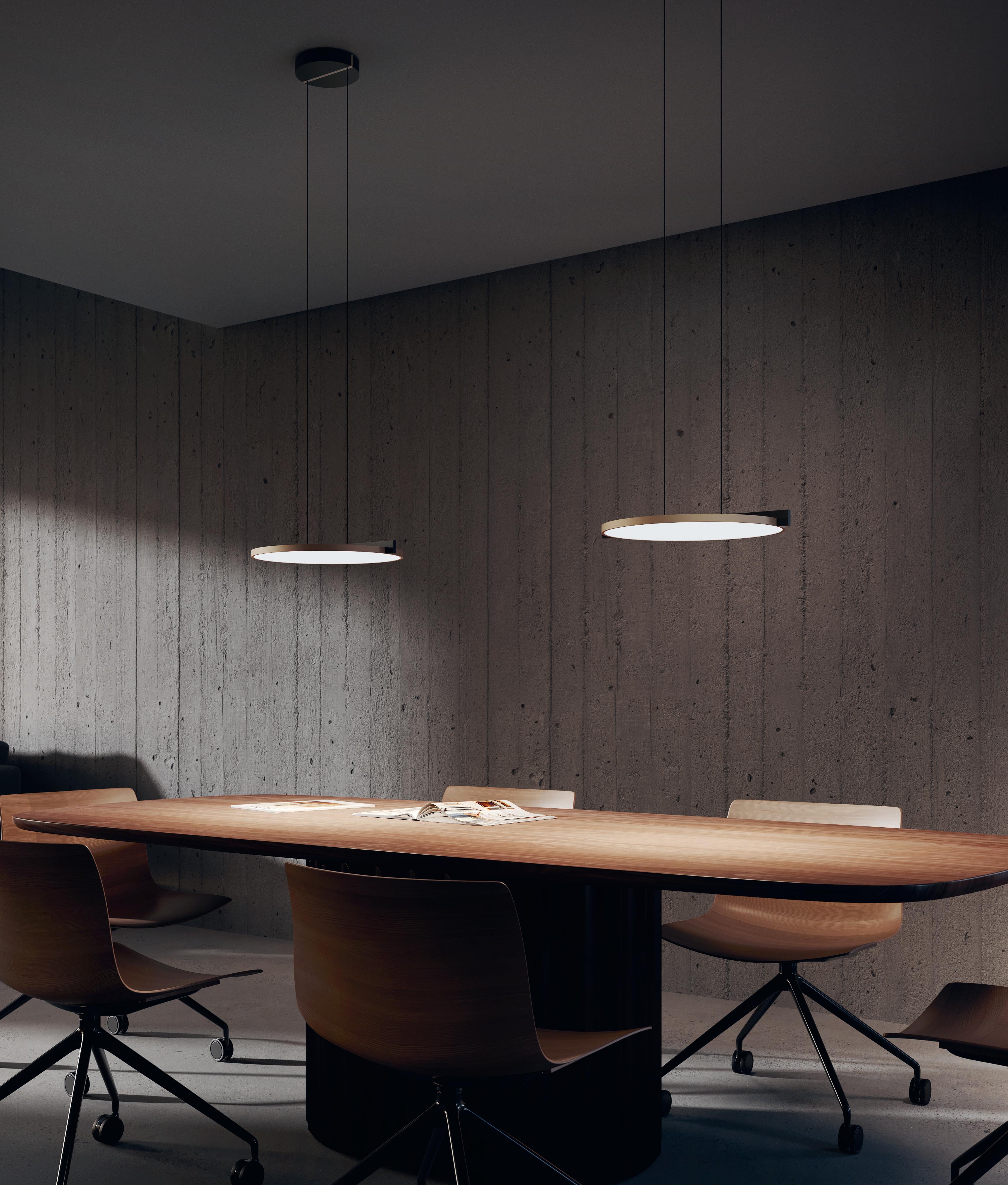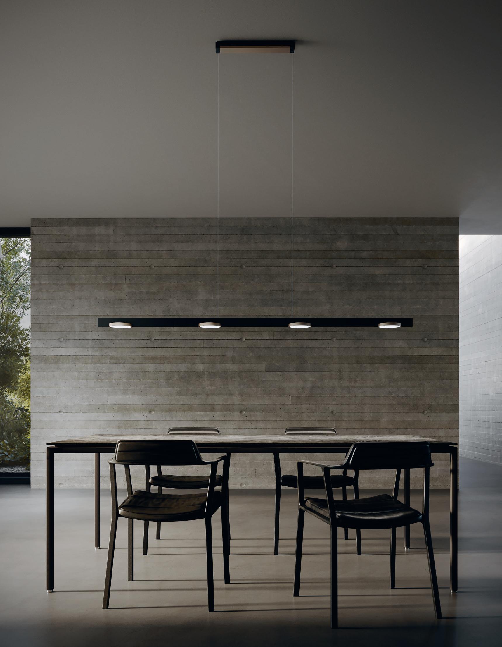 “BLADE is about the elegance of a purist yet sophisticated geometry. Reducing a light to its essential parts with a single linear element that connects solid metal discs, resulting in an intriguing object that celebrates precision, high quality and timeless design”