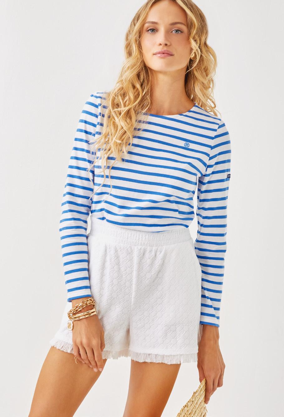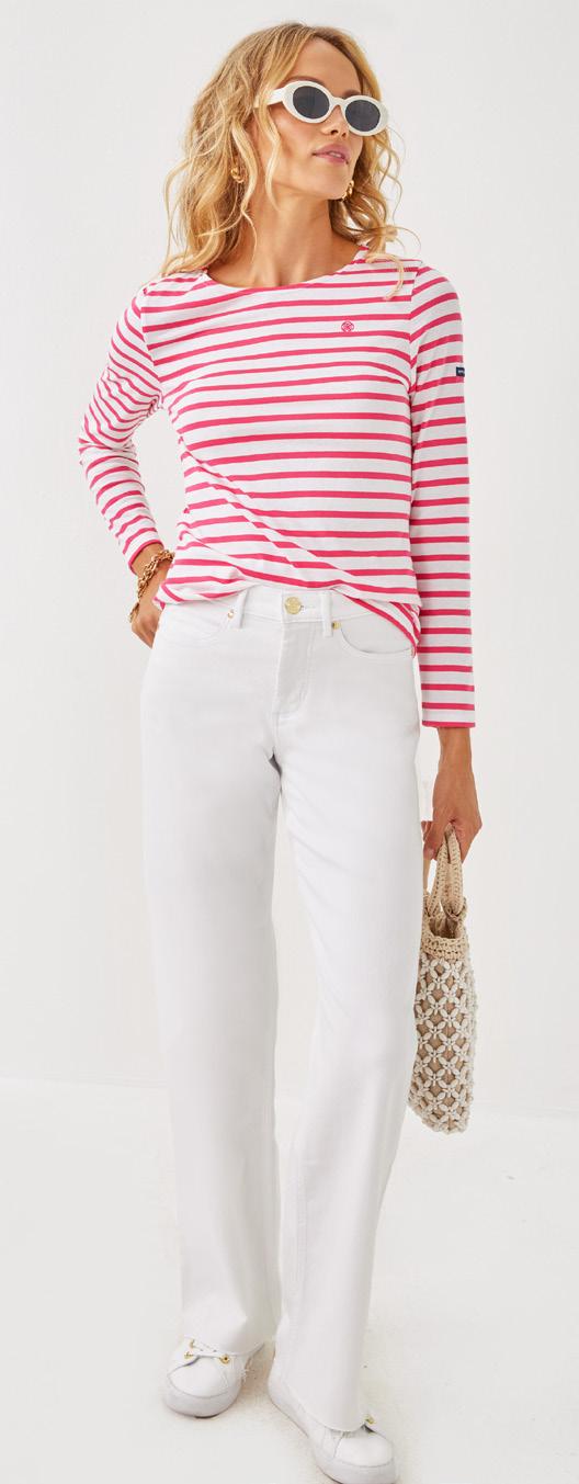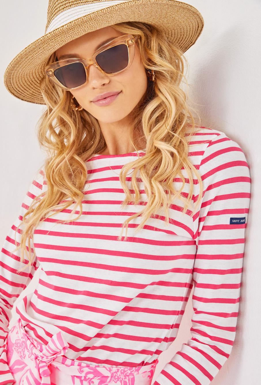 Made in France by Saint James, known for their impeccable craftsmanship, each of the 6 printed collection pieces bares a hidden Lilly x Saint James signature. Fresh, fun, & timeless, the collection invites you to shine bright & sail away with Lilly Pulitzer x Saint James.