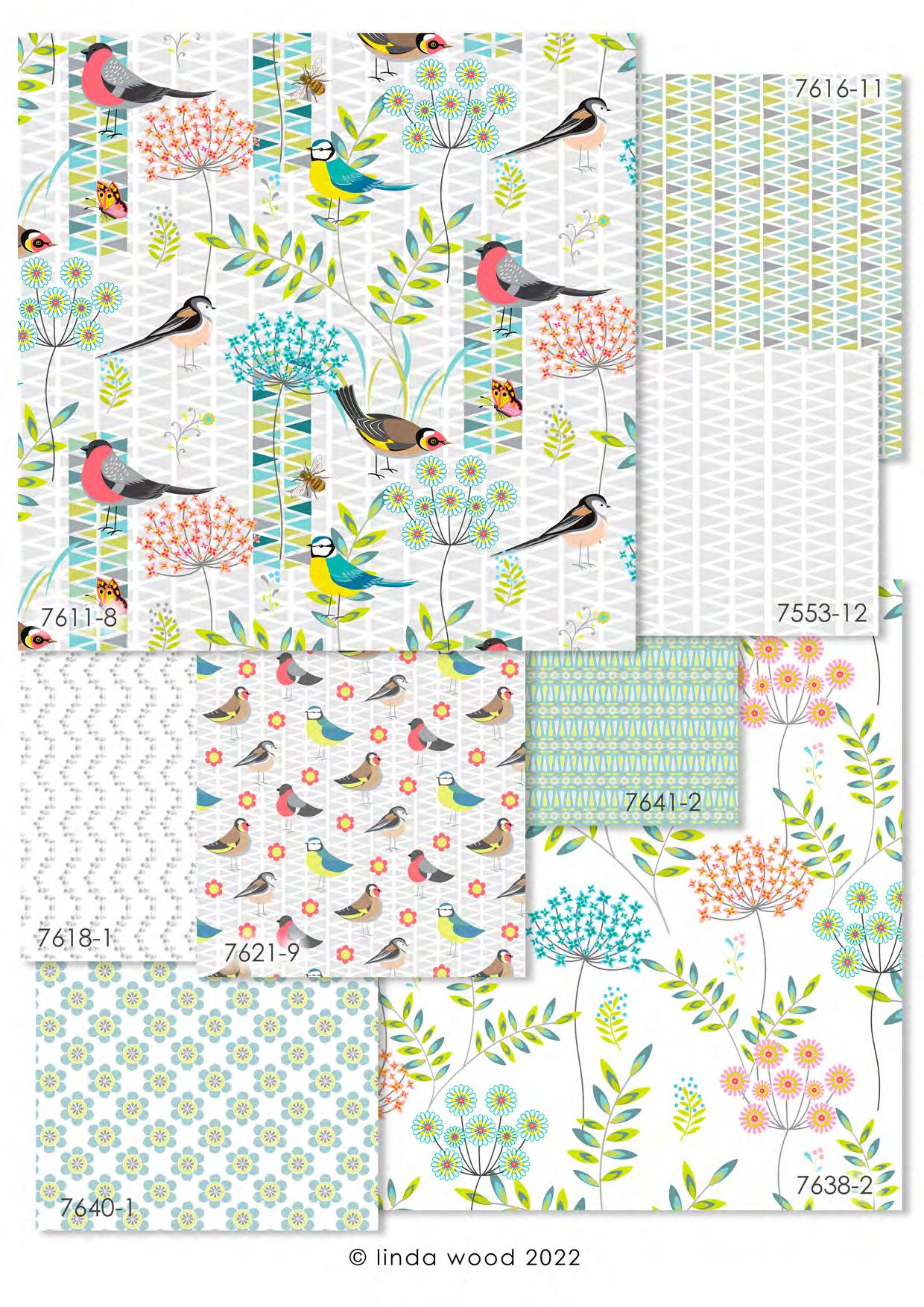 Blooms and Birds new collection of graphic designs and images by Linda Wood. Beautifully presented in a styleguide catalogue illustrating just how good these images translate onto a number of end products from home decor through to fashion. Designs are copyrighted and should not be copied. This PDF is low quality due to size of original if you would like a more detailed high quality copy please contact Linda direct.
