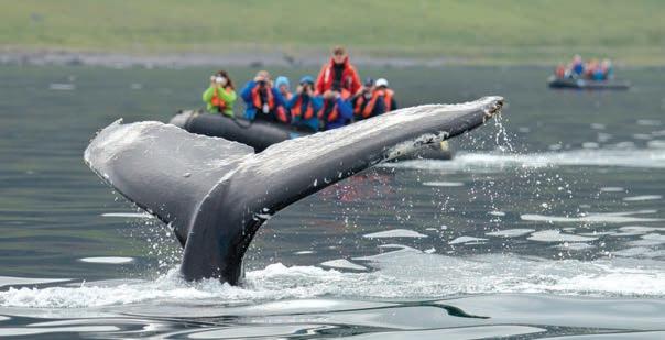 level, it allows you to get to know everyone onboard. We are also able to maximize each experience. While whale watching, for example, instead of watching from eight decks up on a large ship, we get everyone out on Zodiacs, where you’re at water level with your own little group of whales. It blows people’s minds. On top of that, we can go where large ships simply cannot. With our sonar and skilled captains, our vessels can access remote shorelines that are not outfitted with docks and jetties.