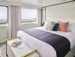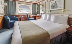 ISLANDER SUITE: Bridge & Main Deck—515 sq. ft. with four large windows, separate living room with sofa, two lounge chairs, large bath with rain shower and tub #209, 218, 303, 309. Family suite: Santa Cruz Islander Suite #303/301