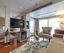 The lounge; Executive suite (Categories 1 and 2 are similar, however Category 1 is on a lower deck) with queen bed, separate seating area, and private balcony; Presidential suite (Category 3) with king bed, separate seating area, and balcony.