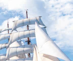 Journey through the Golden Age of Sail aboard this romantic, four-masted squarerigger. Built in 1931 for heiress Marjorie Merriweather Post, she is the last of the private tall ships and carries 30 sails, which are raised by hand as we venture out to sea. Every detail—from the marble fi replaces to the French antiques—refl ect the extravagant charms of American royalty.