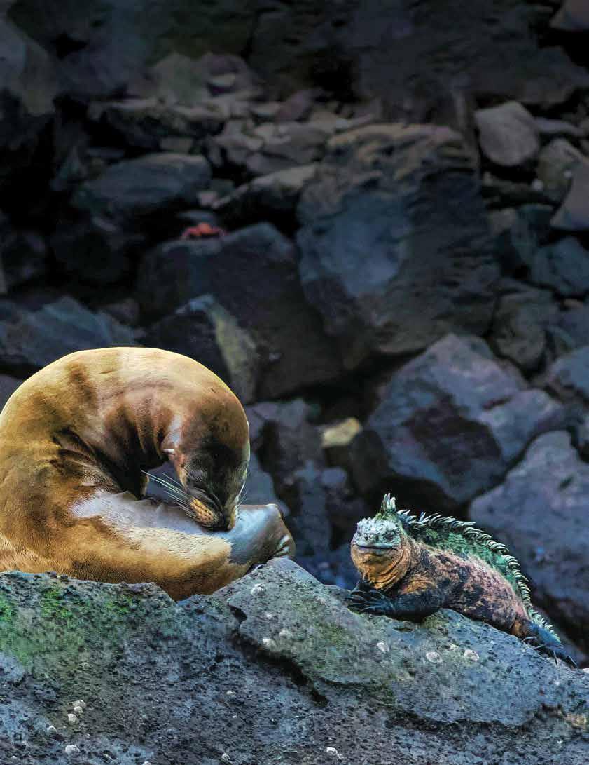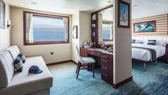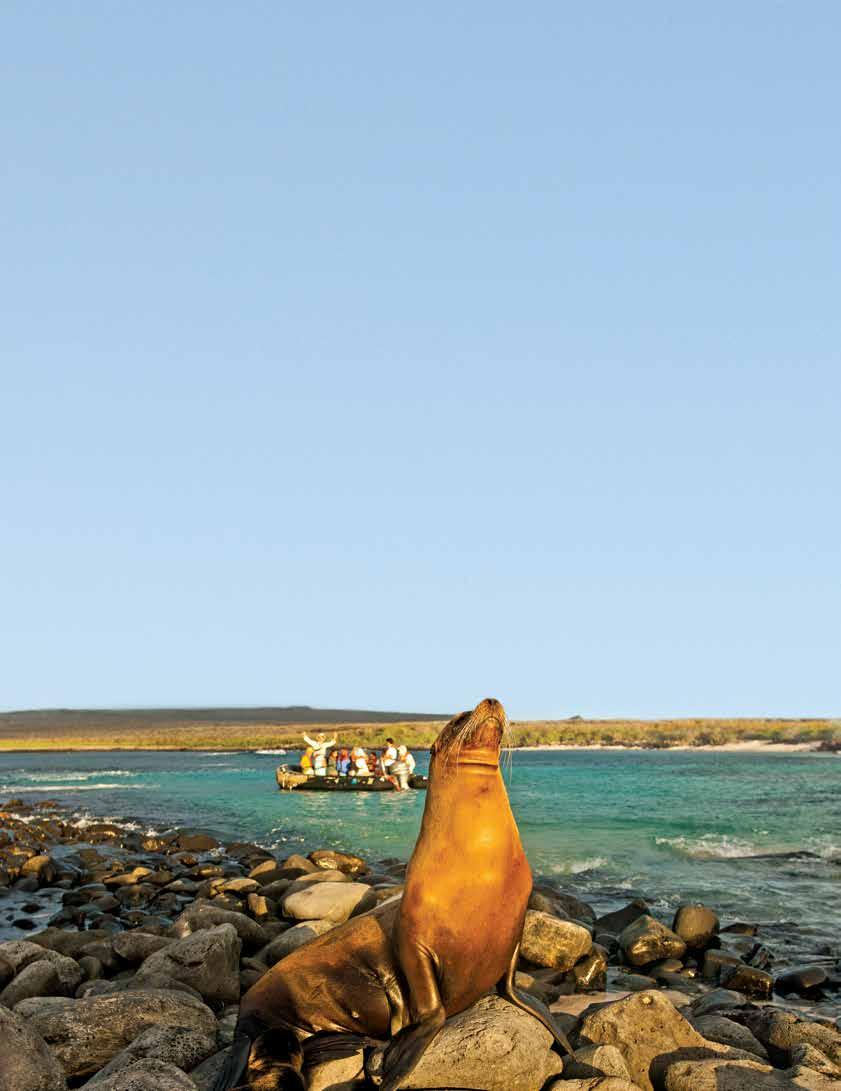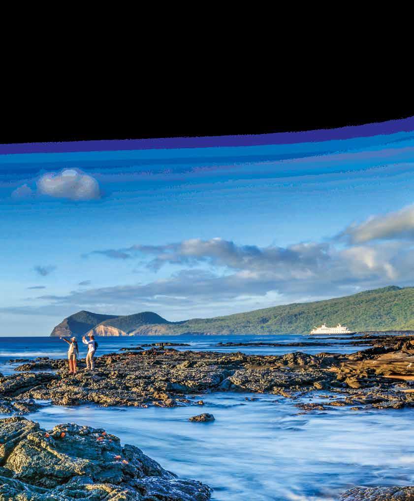 these rich waters. Visit the captain on the open Bridge to learn about navigation, or read up on Charles Darwin and other Galápagos luminaries in the ship library before heading to the lounge for a lively recap highlighting the day’s discoveries.