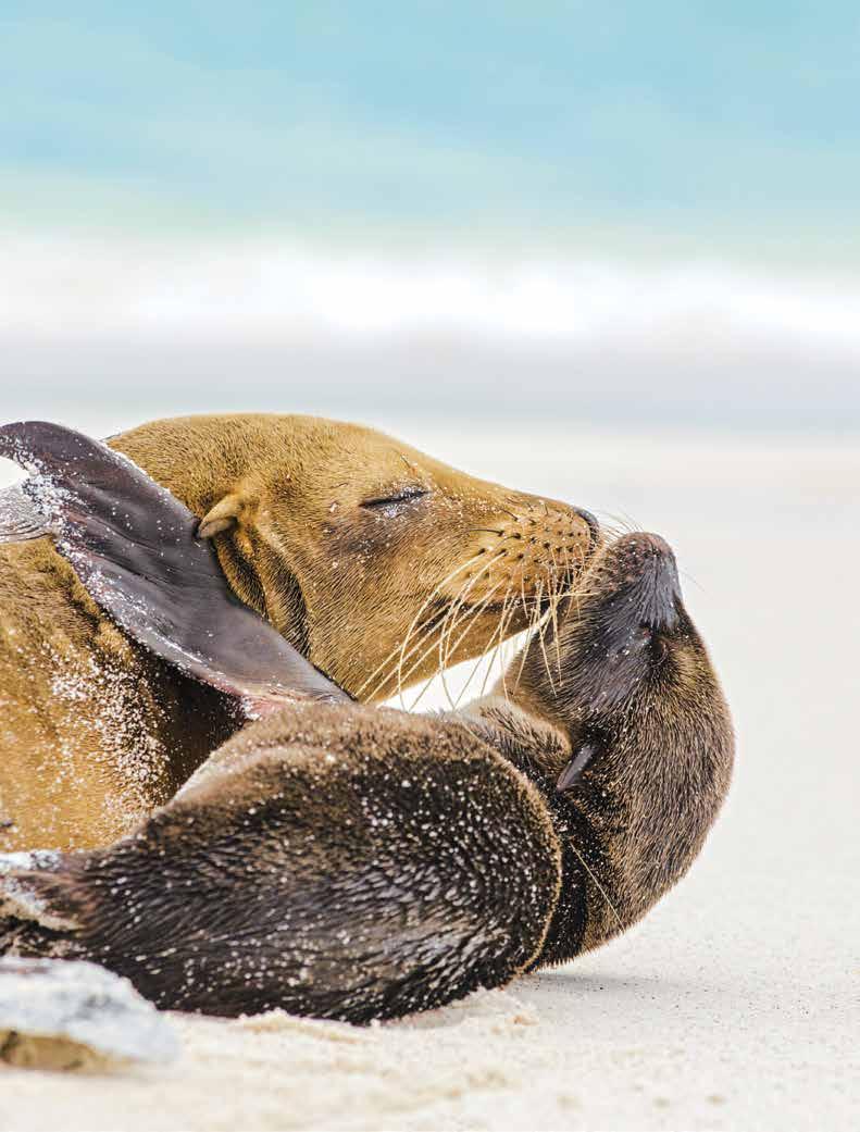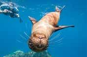 Galápagos sea lions are incredibly curious and acrobatic, often joining snorkelers in an aquatic ballet. Ashore you might see youngsters nursing or adolescents in a pile. They are thigmotactic, meaning they seek out bodily contact.