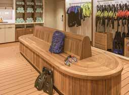 PUBLIC AREAS: Forward lounge and bar accommodating all guests for presentations and gatherings, restaurant, large library with Mac kiosks, open-air observation deck, underwater gear area and dual Zodiac boarding platform, and “open Bridge,” where guests can meet the captain and officers and learn about navigation.