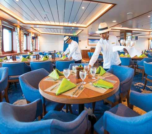 Every meal you enjoy on board offers a taste of your island surroundings by way of our pioneering farmto-table program, which sources everything from avocados and bananas to coffee beans from more than 40 local farms. Developed in partnership with Ecuadorian chefs, our menus reflect the culinary traditions of the region and accommodate the diverse dietary preferences of our guests—we offer