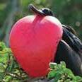 The islands’ two species of frigatebirds—magnificent and great—both have unusual ways of attracting mates. Males inflate a thin red pouch on their throat called a gular sac to create a visible, balloon-like bulge. Adding to the display, they clatter their bills, wave their heads, and call at females in flight.