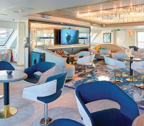 Gracious gathering spaces foster the camaraderie that is a hallmark of our expeditions. Join your fellow travelers on our expansive, open-air observation decks and look for the seabirds and the marine mammals that inhabit