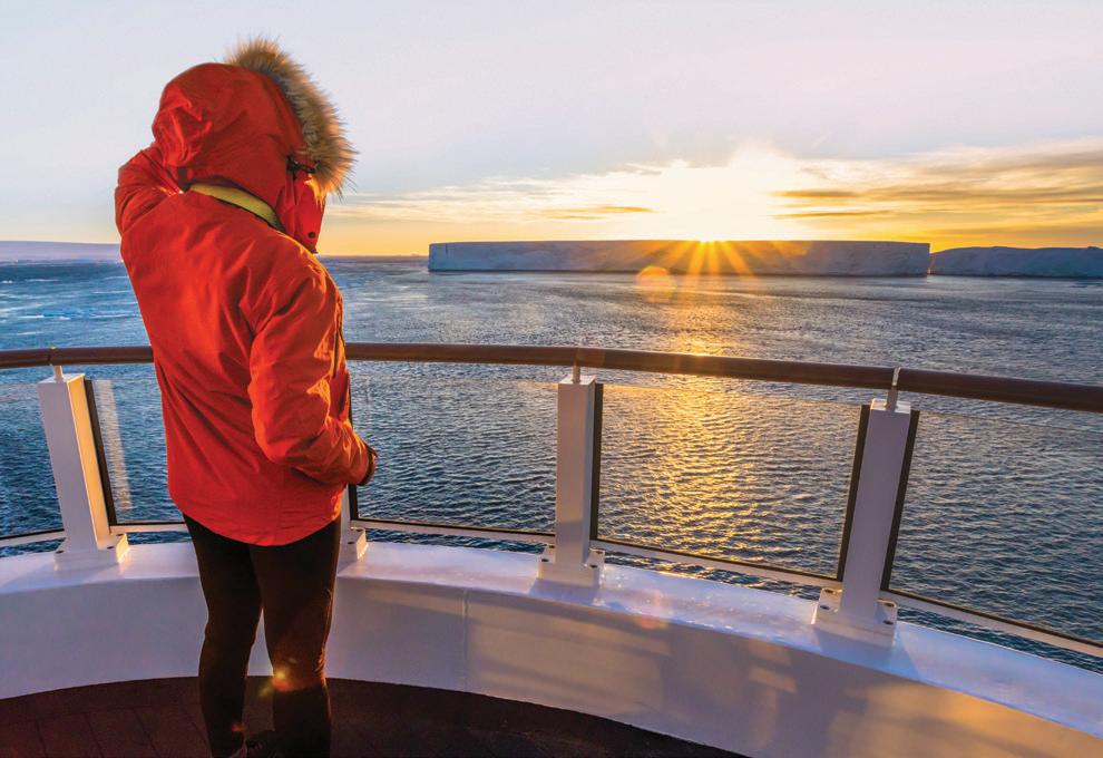 Head to the bow and soak in the icy stillness of the seventh continent before the rest of the ship awakens. You’re likely to meet a naturalist who aids in the search for wildlife, including killer whales, humpbacks and wandering albatrosses.