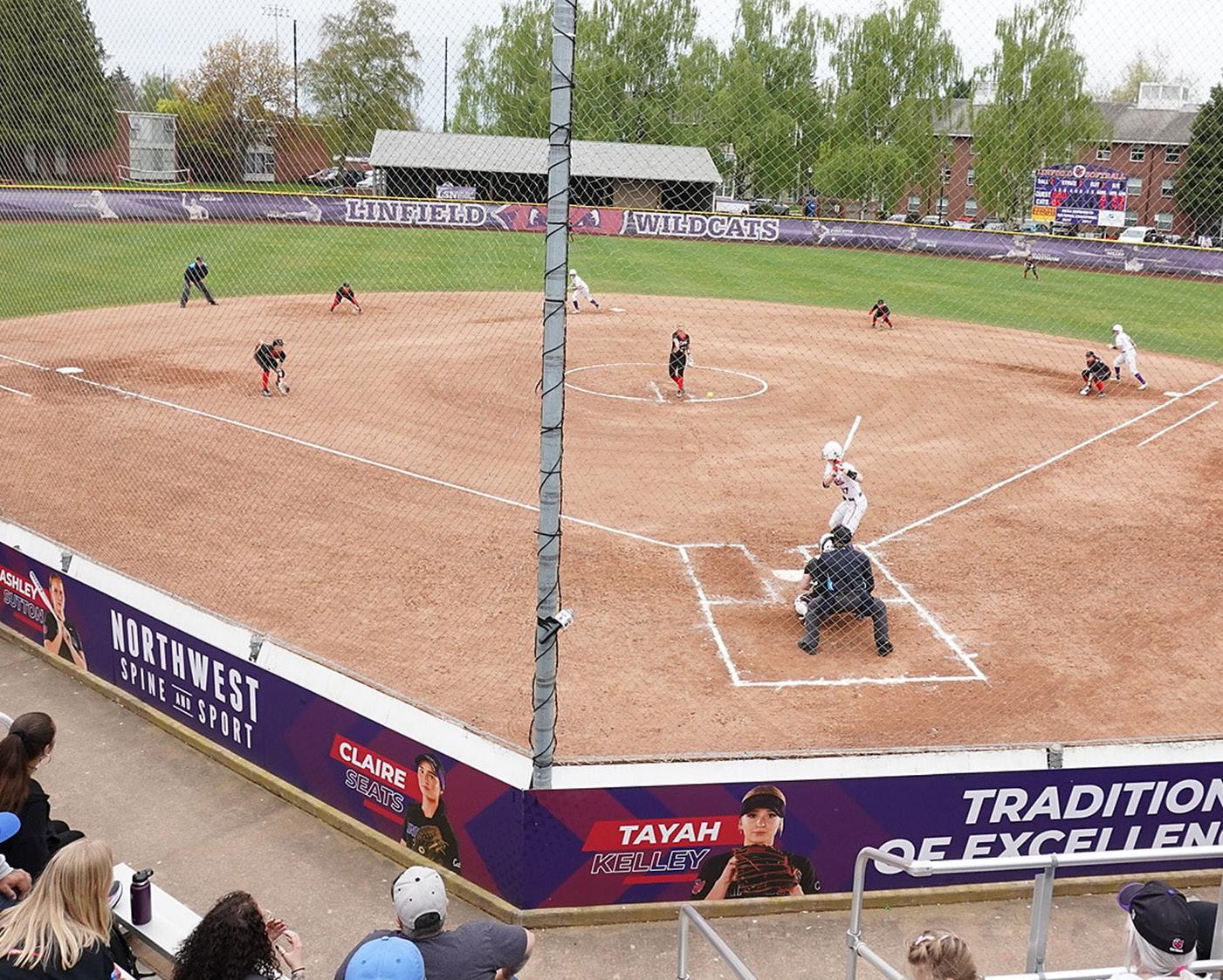 More improvements followed in the fall of 2020. The perimeter of the field was completely encircled with mesh branding, honoring Linfield’s graduated All-Americans as well as the Wildcats’ many conference, regional and national championships. New branded padding was added to the backstop and new netting system was installed.