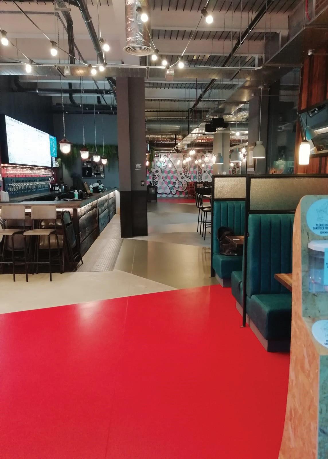 Bradite’s versatile, high-performance floor coating, Floor-It, rose to a number of challenges encountered by Norwich-based JB Decorating Services on bars and restaurant projects across the country. FloorIt is a low odour acrylic paint suited to medium traffic areas. It provides an extremely durable surface which is mark, stain and petrol resistant. Its quick drying abilities – touch dry in just 30 minutes and re-coatable after an hour – mean it is highly recommended for business or commercial use, where speed of completion is a major consideration.