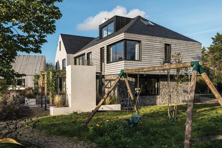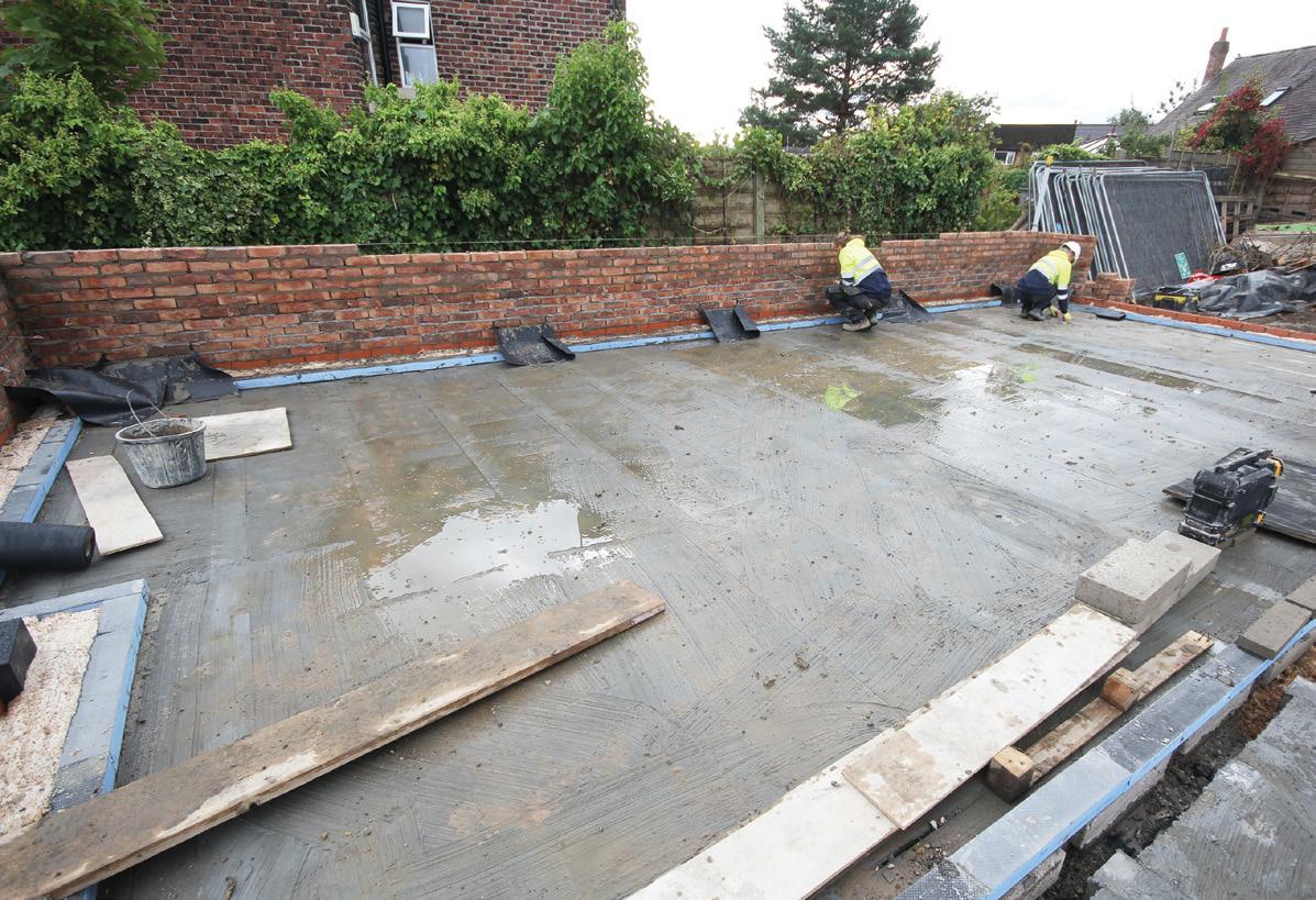 Marmox stockist, Eco Merchants of Swindon, supplied a total 170 of the 100 mm wide version for the versatile 600 mm long Thermoblocks, with Dovetail’s own operatives utilising an approved adhesive to not only seal the overlap joints, but also to bed the blocks across the OSB base which is covered by a ‘paintable’ membrane. The various lines of Thermoblocks then support the stick-built timber frame exterior and internal walls, with the main isocyanate floor insulation panels infilling the rest of the ground floor area. www.marmox.co.uk