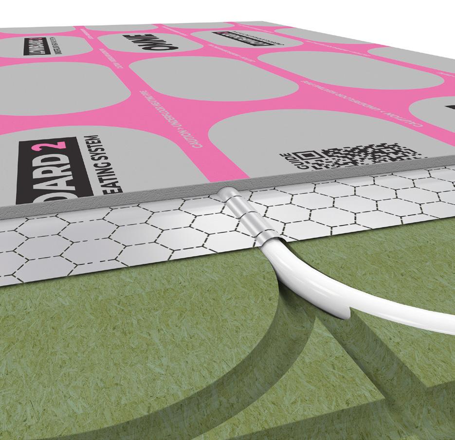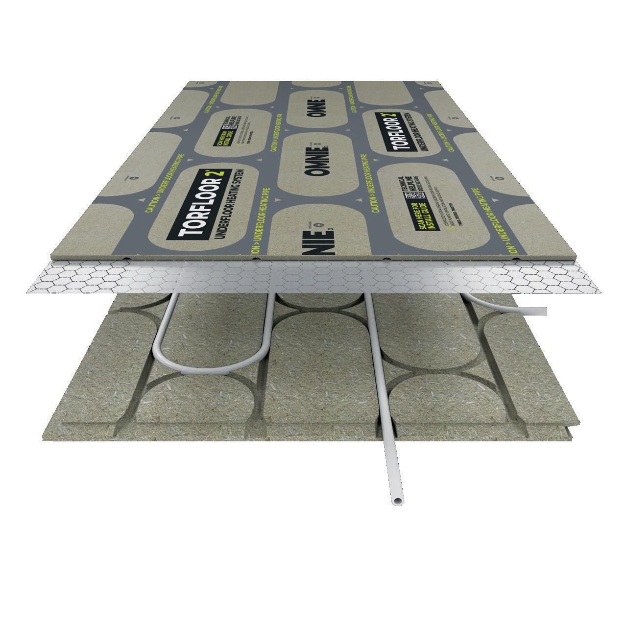Unique pre-printed chipboard layer shows where the pipe channels are, eliminating the risk of floor covering fixings damaging the pipe. Locator guides show where screws should be placed.