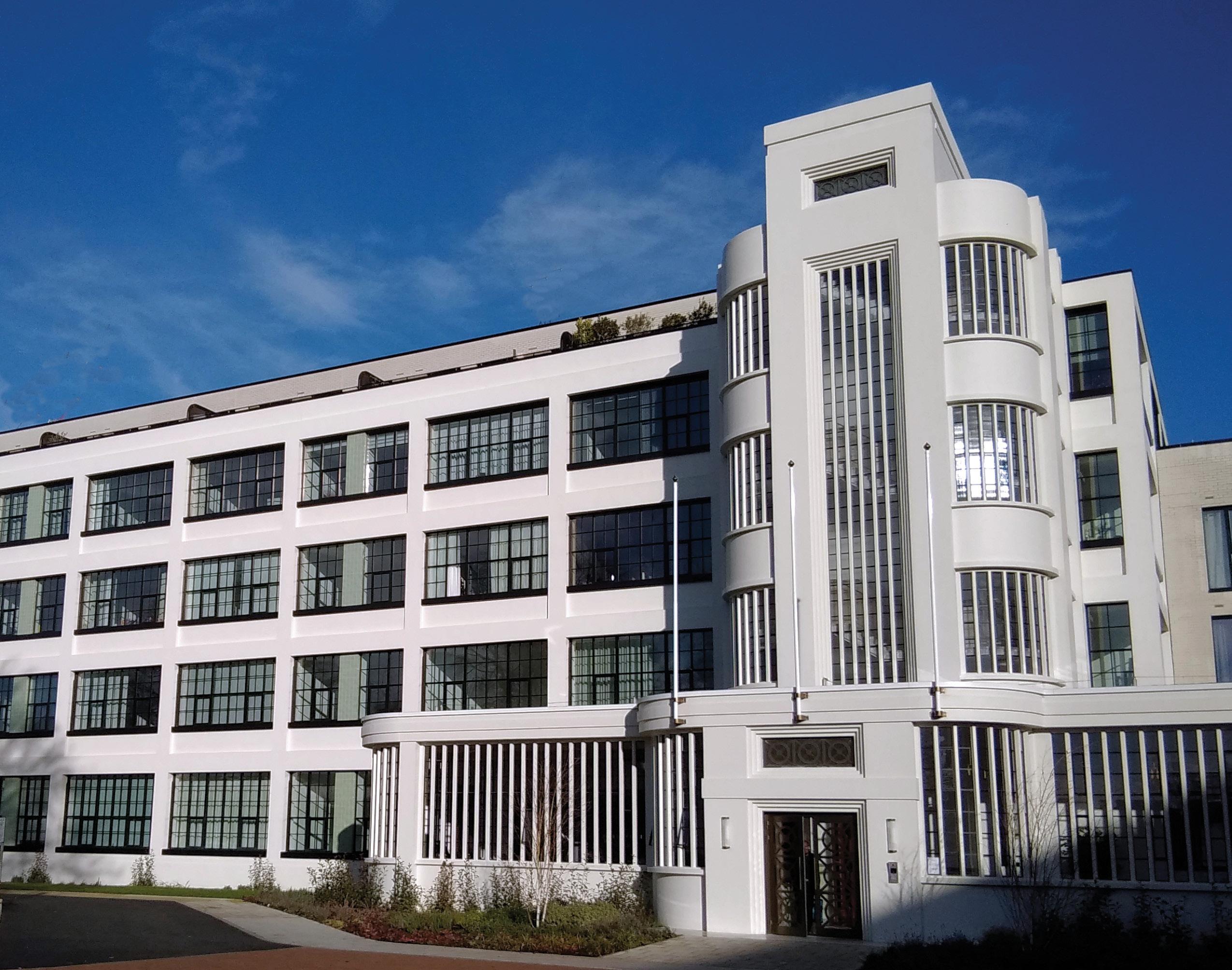 Hayes Village is situated along the Grand Union Canal, surrounded by nine acres of green space and includes play areas and allotments. Original features from the Nestlé factory, including one of the listed art deco style buildings, are carefully woven into the fabric of the new development and although all the buildings have distinct characteristics, the existing factory buildings have inspired the overall design.