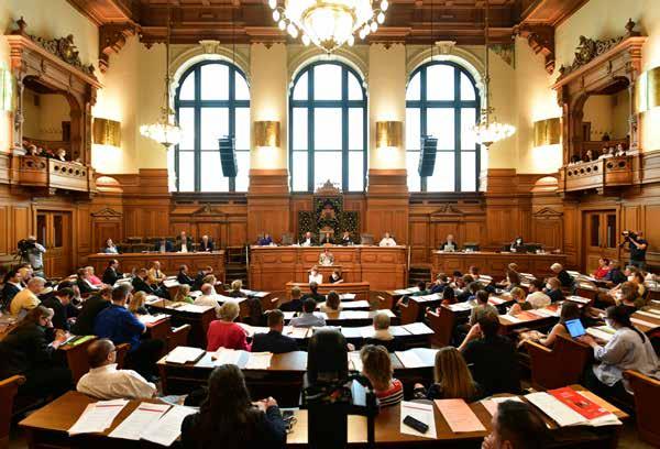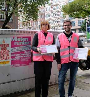Mieter:innen mitbestimmen. Seit dem 15. September sammelt die Initiative „Hamburg Ent eignet“ Unterschriften für einen Volksentscheid. In der ersten Sammelphase müssen 10.000 Unterschrif ten zusammenkommen. Als LINKE setzen wir uns in der Bürgerschaft und in den Bezirken schon lange dafür ein, dass Wohnen in Hamburg bezahlbar bleibt. Deshalb unterstützen wir die Initiative und rufen dazu auf, sich aktiv zu beteiligen. In Berlin wird gera de darum gerungen, wie ein Gesetz zur Enteignung aussehen könnte. Möglicherweise entsteht eine Steil vorlage, von der die Hamburger:innen profitieren können, wenn „Hamburg Enteignet“ erfolgreich ist.
