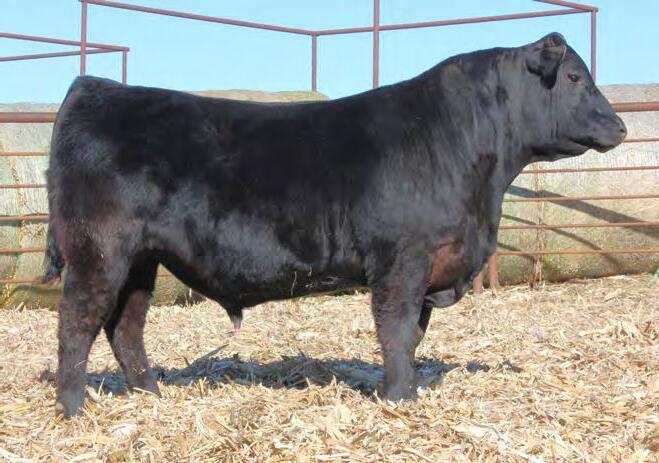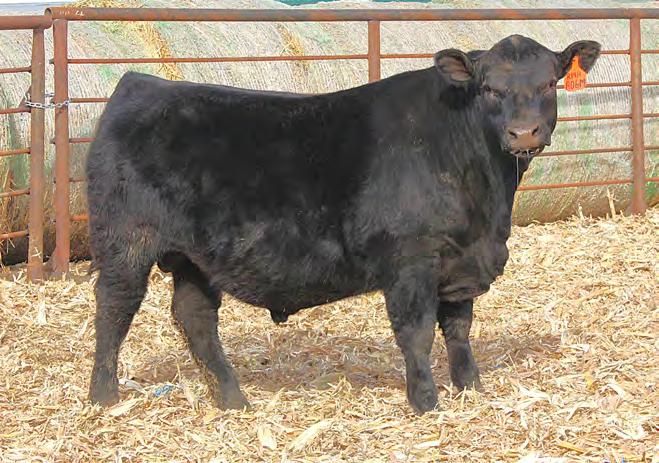 Eye appealing. Hard to miss this bull. Phenotypically heavy muscle bull that is complete in his make up with extra depth of body and rib shape. Moderate frame type of bull with lots of Angus characteristics. Rainmaker 4404 and President matings have worked well for us.