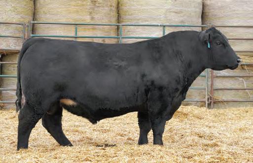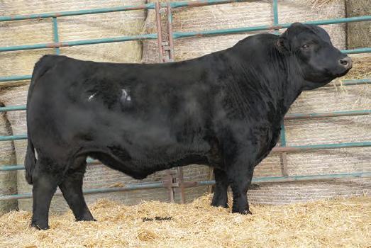 Heifer bull deluxe! A good way to look at this low percentage Gelbvieh bull is “a lot of Angus with a splash of performance.” Just like the Jackpot 1/2 brothers, this bull exhibits a rib cage with a tremendous amount of capacity with adequate performance. If you don’t like checking cows at calving, this would be a great choice! He also has a very desirable carcass profile. Tenderness score of 7!