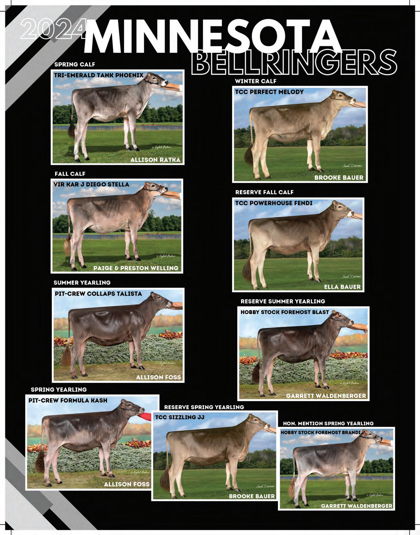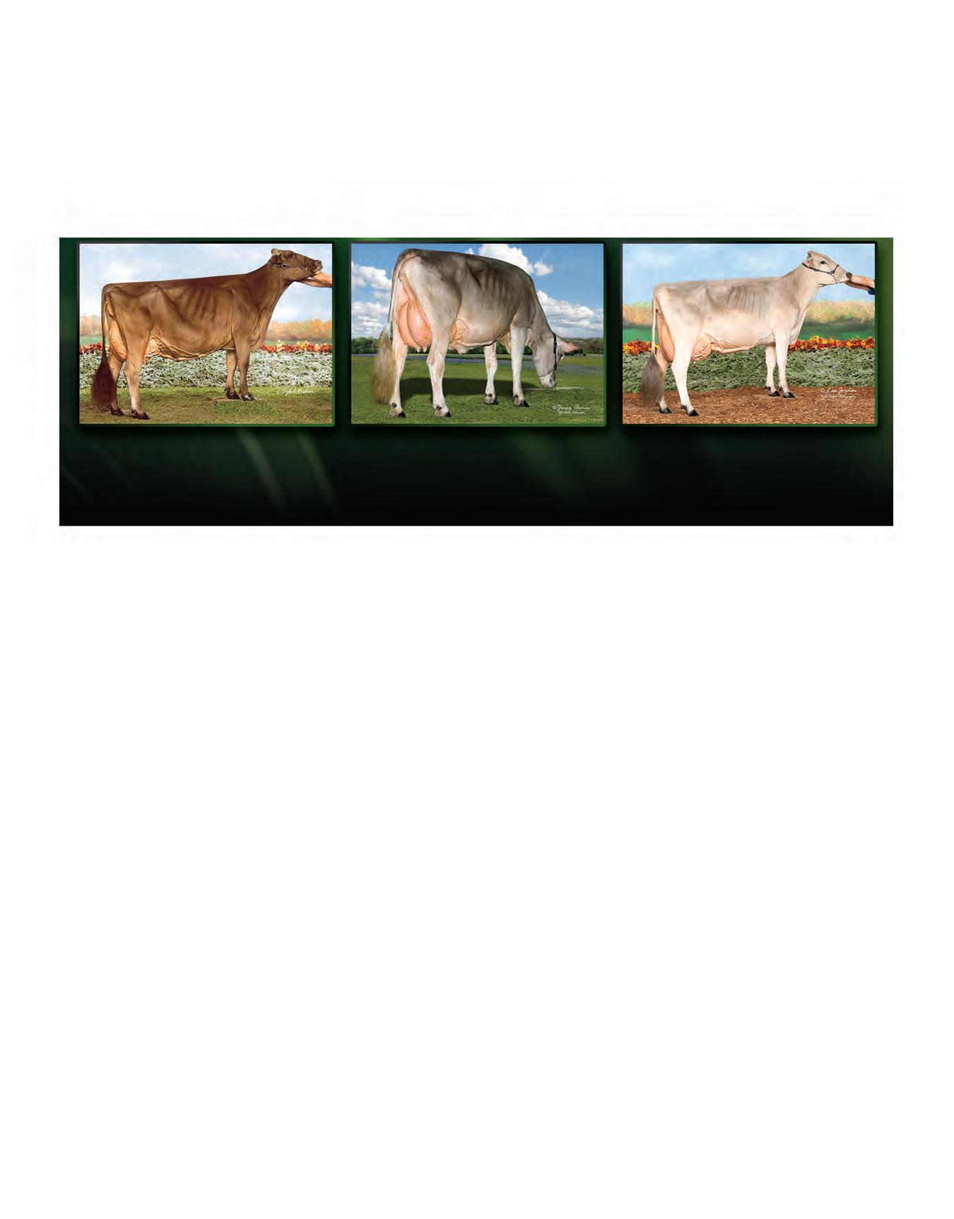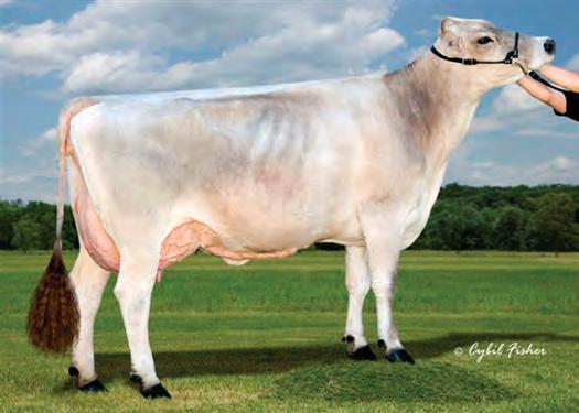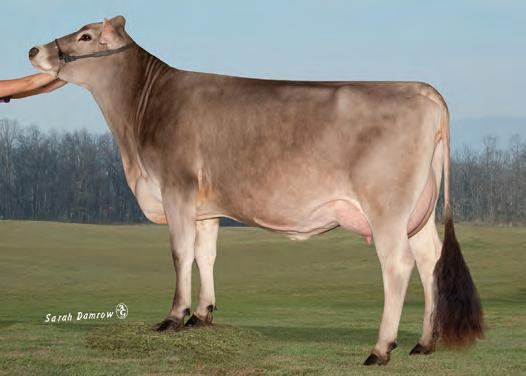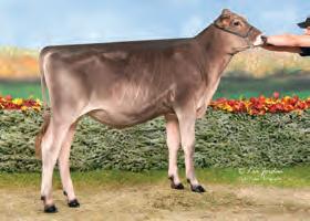 Another standout is Brown Velvet Rampage Vinnie E91. She was a class winner at the Southeastern National Brown Swiss Junior Show as a two-yearold and was Reserve Grand Champion at Spring Dairy Expo Brown Swiss junior and open shows as a three-year-old. They sold her to Blessings Farm and Brian Garrison in 2024. Her Powerball daughter, Brown Velvet Powerball Vermont was Nominated All-American in 2023 and was Reserve National Bell Ringer in 2023 as a spring calf.