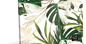 A designt az idei év legfrissebb trendjei határozzák meg. Feltűnnek a dzsungel harsányan zöld levelei, burjánzó virágai, de több verzióban megjelennek a márványos minták is.