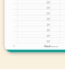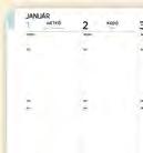 Tartalom: napi tervező naptár, heti-havi összesítő, nemzetközi ünnepek, névnapok éves összesítője, vonalalas és sima jegyzetoldalak