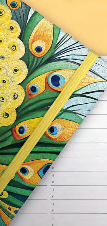 Papír: Borító: keménytábla, soft touch fólia, UV lakk, kerekített sarok, gumis rögzítő I Belív: 80 gr fehér ofszet, 2+2 szín