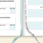 Tartalom: napi tervező naptár, heti-havi összesítő, nemzetközi ünnepek, névnapok éves összesítője, vonalalas és sima jegyzetoldalak