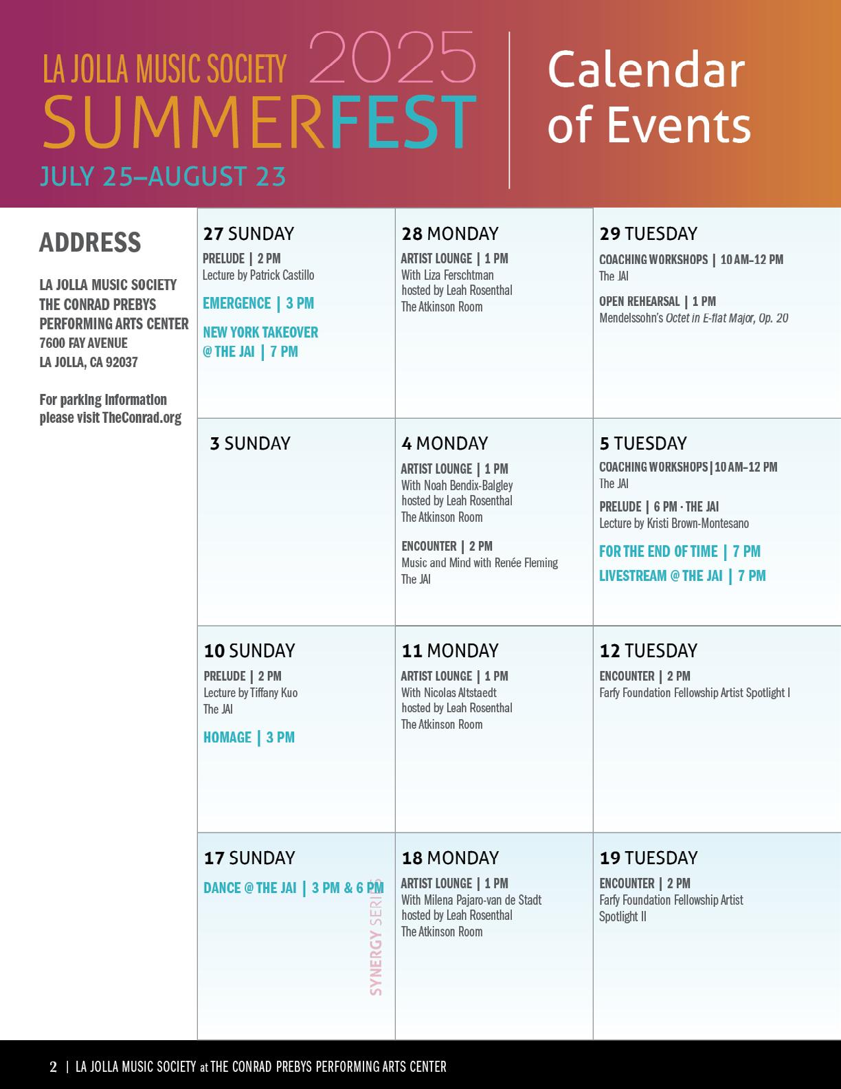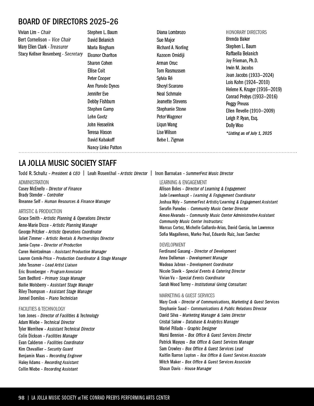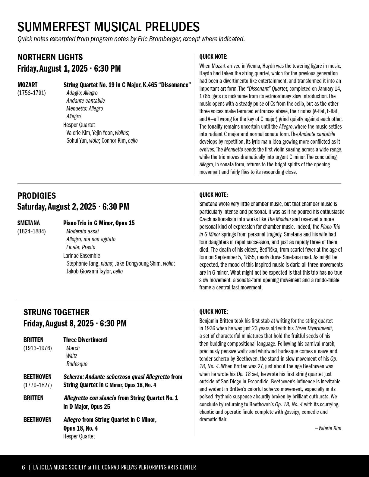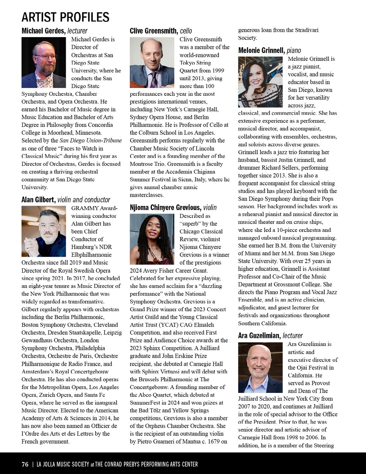 La Jolla Music Society's SummerFest 2025 Digital Program Book