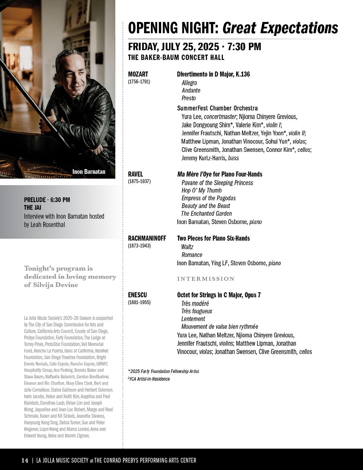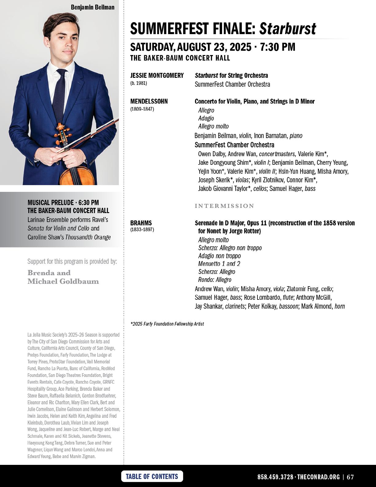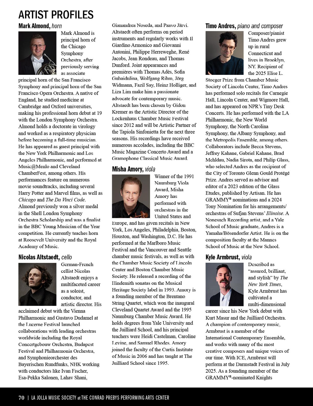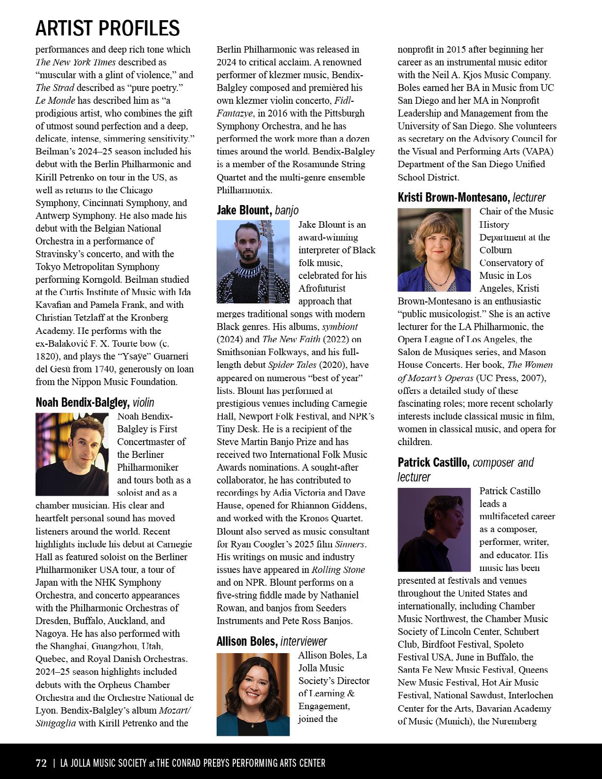 La Jolla Music Society's SummerFest 2025 Digital Program Book