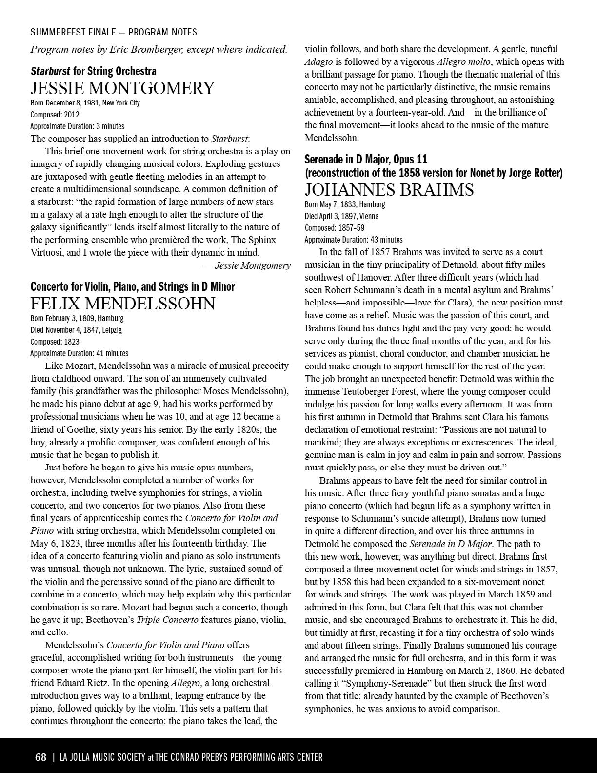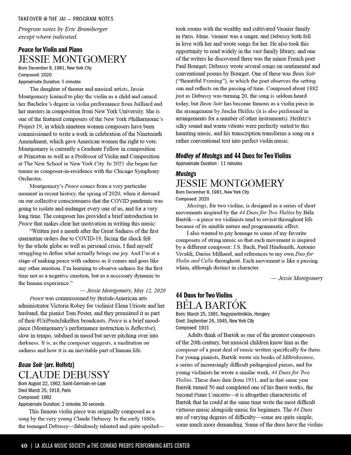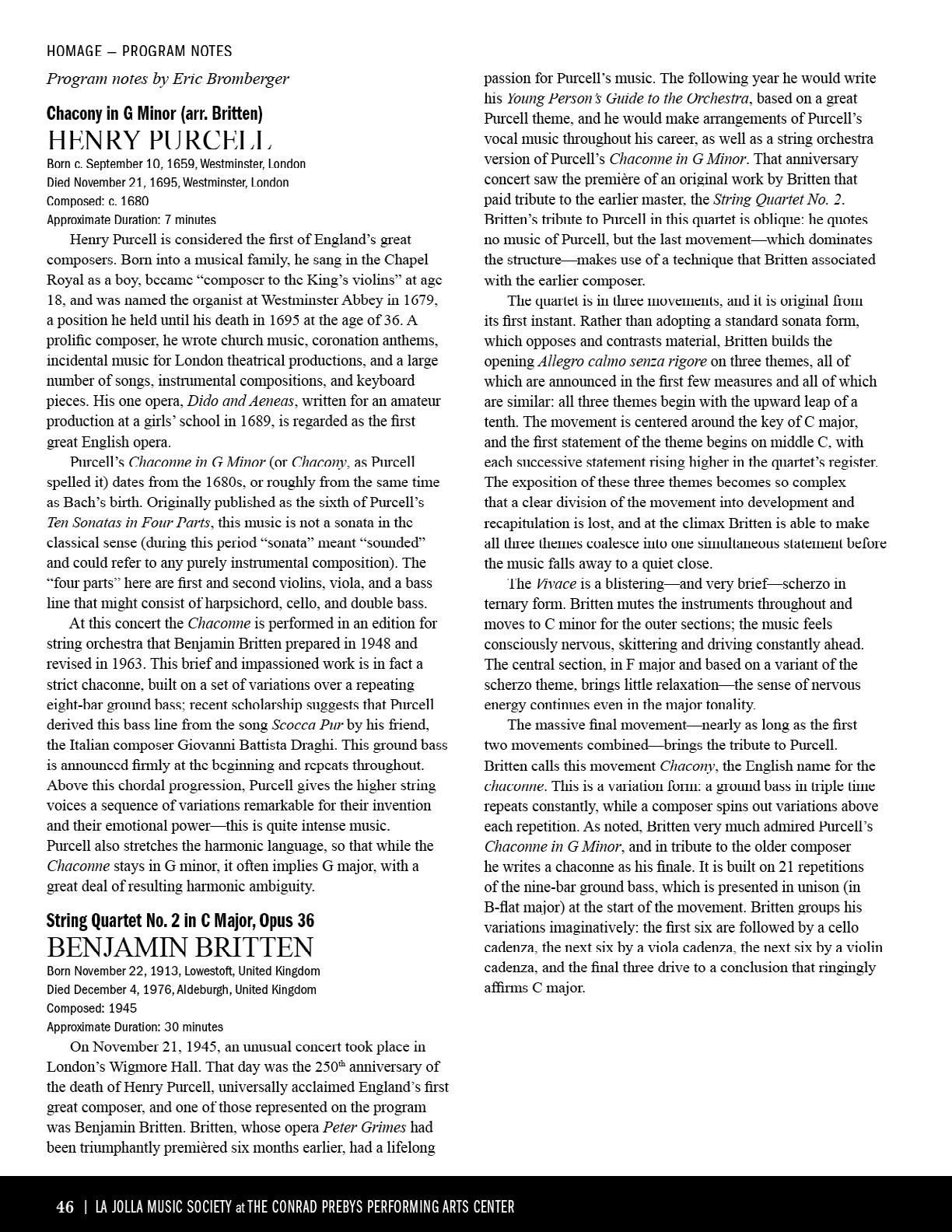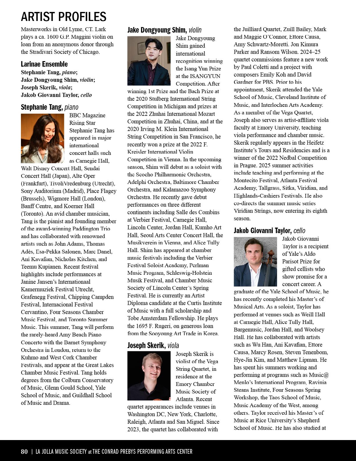 La Jolla Music Society's SummerFest 2025 Digital Program Book