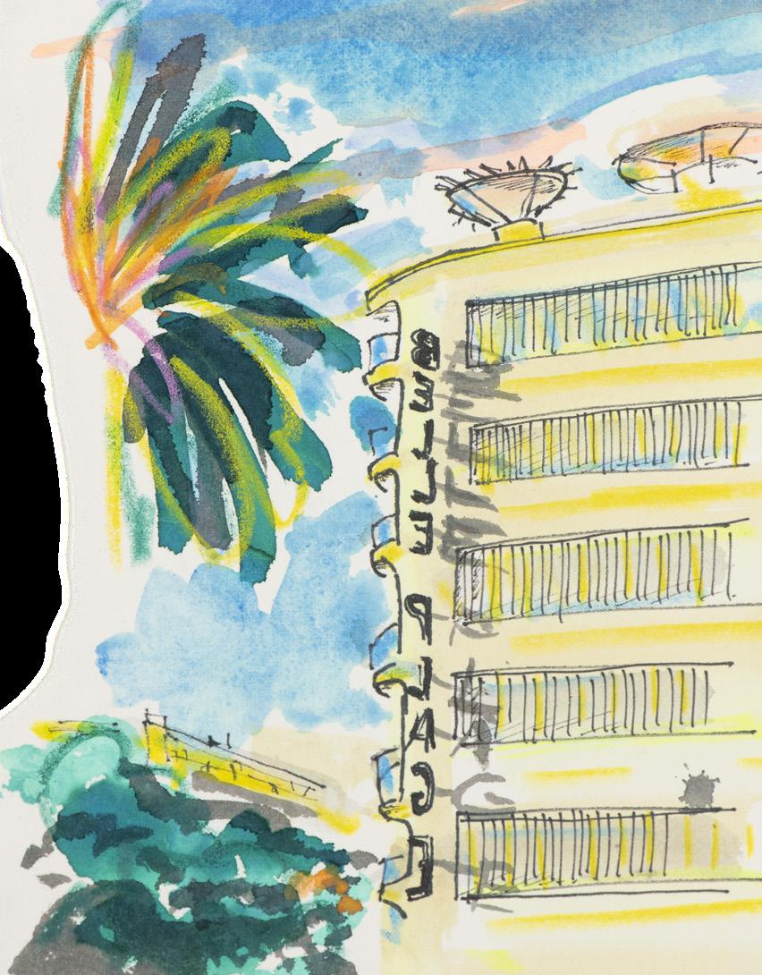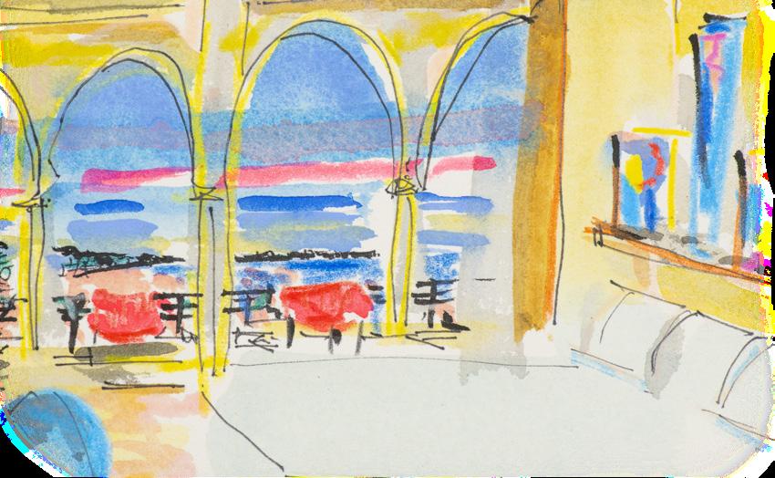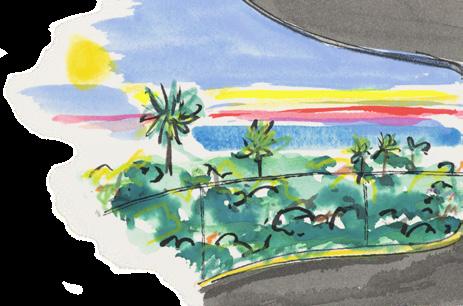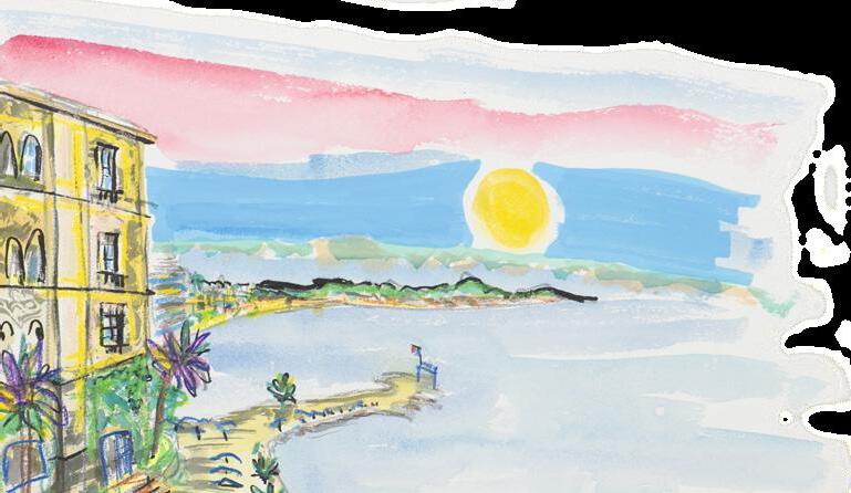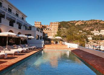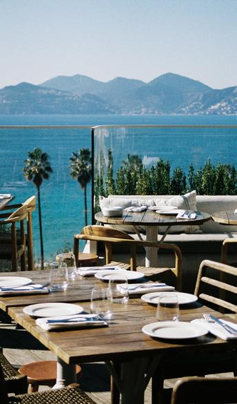 POSÉ AU pied du Suquet, le quartier historique de Cannes, juste en face de longues plages de sable et éloigné de l’agitation de la Croisette, cet hôtel d’un blanc éclatant est la dernière attraction de la Riviera. Et s’impose avec un charme fou... Signé par l’architecte d’intérieur Raphael Navot, le Belle Plage évoque la blancheur des maisons grecques, les courbes des immeubles Bauhaus de Tel-Aviv, le design des buildings du Miami Art déco. Tout semble avoir été pensé avec soin pour créer un cocon tout en rondeur aux accents bohèmes. Rien d’étonnant quand on sait qu’il s’agit de la troisième adresse du trublion Samy Marciano qui, après avoir fait fortune dans le prêt-à-porter, a opéré une spectaculaire reconversion dans l’hôtellerie — comme l’hôtel Bachaumont et l’Hôtel National des Arts et Métiers, deux réussites parisiennes. Ici, la vue du rooftop est à couper le souffle. Derrière les palmiers, les îles de Lérins, Sainte-Marguerite et SaintHonorat et une vue sur les montagnes volcaniques de l’Estérel, jouant les paradis sur mer. Au coucher de soleil, une autre vision de Cannes apparaît. Rouge et flamboyante. Magique. Côté papilles, le restaurant Bella a été confié au chef Eyal Shani, gourou de la scène culinaire tel-avivienne, qui marie les saveurs de la Provence dans des plats à partager. C’est ici aussi que l’on prend un petit-déjeuner très gourmand ou que l’on vient boire un verre durant la journée. Quel que soit le moment, on s’y délecte d’une des plus belles vues sur la mer de Cannes.