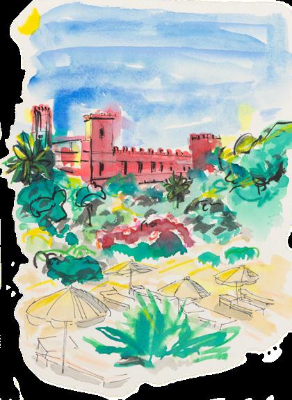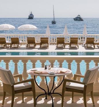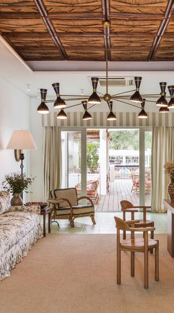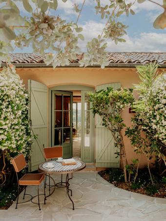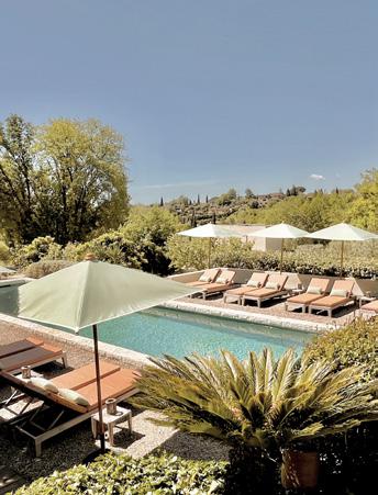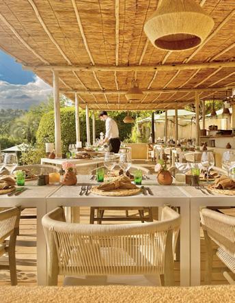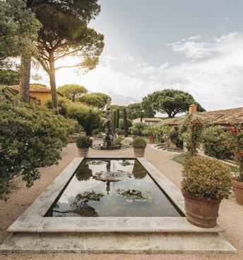 LA VILLA MARIE Saint-Tropez, au cœur de la pinède, cultive un naturel décontracté et sophistiqué, offrant une expérience inoubliable où la douceur de vivre règne en maître. Jocelyne et Jean-Louis Sibuet ont su imprégner leurs établissements de l’art de vivre à la française, alliant élégance, charme et authenticité. Leur philosophie repose sur la création de lieux uniques, où chaque détail est pensé pour offrir une expérience exceptionnelle. Parmi leurs joyaux, Villa Marie à SaintTropez incarne parfaitement cette vision. Située au cœur de la Riviera, cette demeure offre un cadre idyllique et sophistiqué. Entourée d’un jardin méditerranéen luxuriant, elle mêle harmonieusement l’élégance des intérieurs avec l’atmosphère décontractée de Saint-Tropez, faisant de chaque séjour une véritable immersion dans le luxe et la douceur de vivre. Nichée au milieu d’une pinède de trois hectares surplombant la mythique Baie de Pampelonne, Villa Marie arbore une architecture méridionale avec ses tuiles romaines, arcades et balcons en fer forgé. Les tonalités lumineuses de l’ocre sont sublimées par l’intensité du ciel bleu. Cette luxuriante oasis, à l’écart de la frénésie côtière, invite à flâner entre allées et jardins rafraîchis par des bassins, patios et terrasses. La piscine lagon, aux nuances céladon et émeraude, serpente avec grâce dans un enrochement naturel, offrant une vue sur le ciel et la mer.