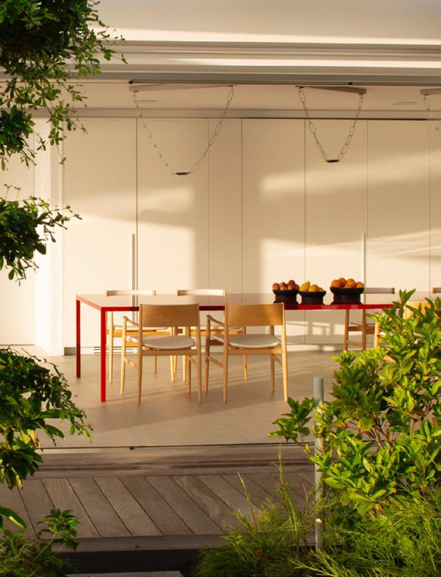 Here you will immerse yourself in the rhythms of the natural world, but also experience the luxury and charm of a bygone St Barth era. Designed as the architect’s home in the 1990s, with exposed concrete walls, wooden ceilings, and tiling, it is a gem o ering unparalleled design aesthetics. It’s complemented with beautiful modernist interiors and rare vintage furnishings that echo the one-of-kind character of this spectacular retreat.