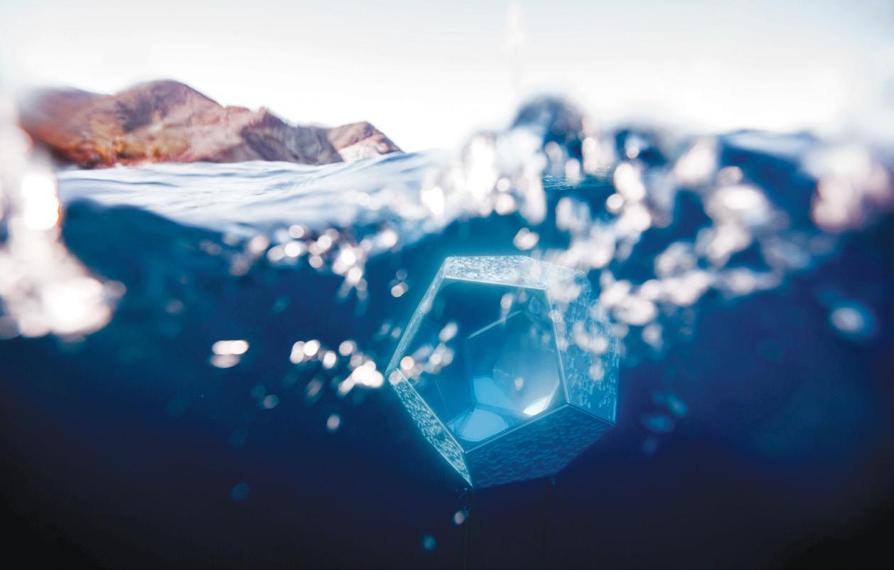 On view is the video installation Underwater Pavilions by the artist Doug Aitken. e lm explores three remarkable sculptures and distils an otherworldly experience by immersing viewers in an underwater realm. Chronicling the artworks—from installation to their encounters with divers and aquatic life—the installation tunes viewers into the rhythm of the ocean and its lifecycles, as the structures adjust with the currents and time of day. Viewers experience a variety of converging perceptual encounters that play with the uidity of time and space, where the language of contemporary architecture, land art, and ocean research begins to merge.