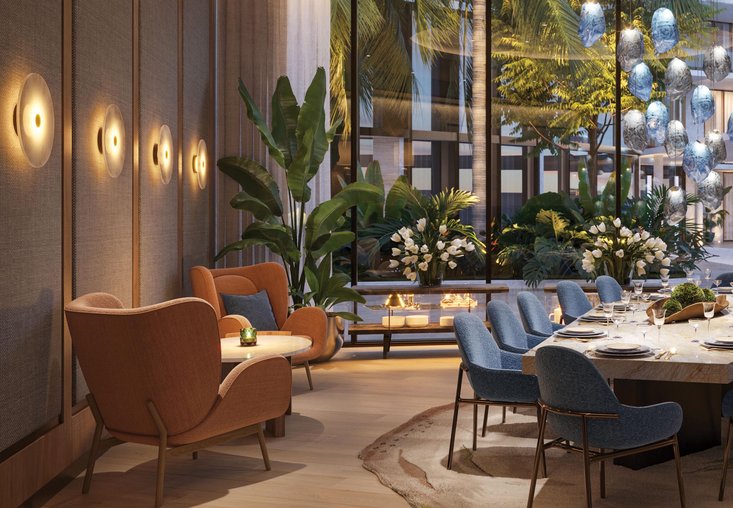 At nightfall, the private dining room is ideal for intimate gatherings that could include dinner by a top chef or birthday parties coordinated by the property’s dedicated residences team.