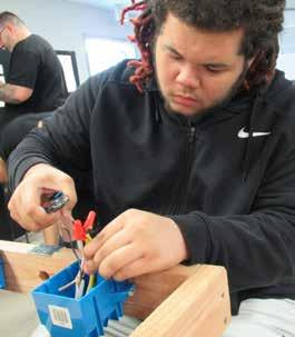 Jose Quesada can relate to Cortes’s enthusiasm for the work. As an LMC ETEC professor, he brings to the classroom his own 27 years of experience in the field and fond memories of having gone through the same program when he was starting out. Students in his Friday class practiced wiring outlets and running conduits through a structure.