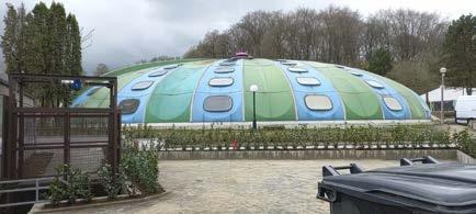 Our decades of experience in fiberglass component production have also enabled us to work in sectors beyond aquatic attractions. In 2024, for example, Human Company entrusted us — in collaboration with other specialized companies — with the renovation of the Tournesol dome at “Camping Birkelt” in Larochette, a national monument protected by Luxembourg’s Cultural Heritage authorities. The aim of the project was to adapt the building statically and structurally to modern needs and regulations. To achieve this, we created an innovative sandwich structure with specific reinforcements (“core”) and extensive use of fireretardant resins. It was a major technical challenge, filled with unknowns due to the completely new use of thick, fire-