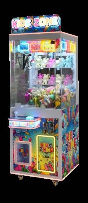 3L CANDY II°, has a similar appearance to a crane but has two options such as always taking each coin introduced, dispensing a product, or with programming and winnings in percentage upon entry. It can also be programmed and used differently, it can operate with multi games and as a toy card dispenser.