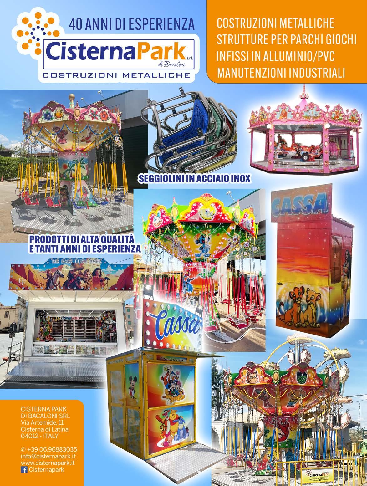 The company Cisterna Park Bacaloni was born from the innovative ideas of its founder, Primo Bacaloni, and today boasts over 40 years of experience in the construction of metal structures, flying rides, amusement park facilities, and components for funfairs.