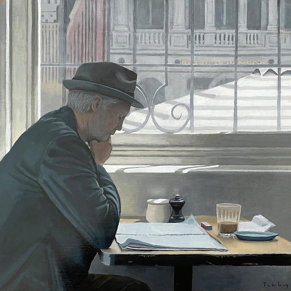 Exploring the intersection between photography and painting, Riddle’s work delves into the complex relationship between these two art forms, offering viewers a fresh perspective. While photography may capture a decisive moment, Riddle’s paintings insist we linger longer and take into account the subtle changes in hues or the depth of heavy shadow. The paintings invite us to be voyeurs of scenes permeated with quiet tension, leaving us conjuring an unspoken narrative or fleeting moment just missed.