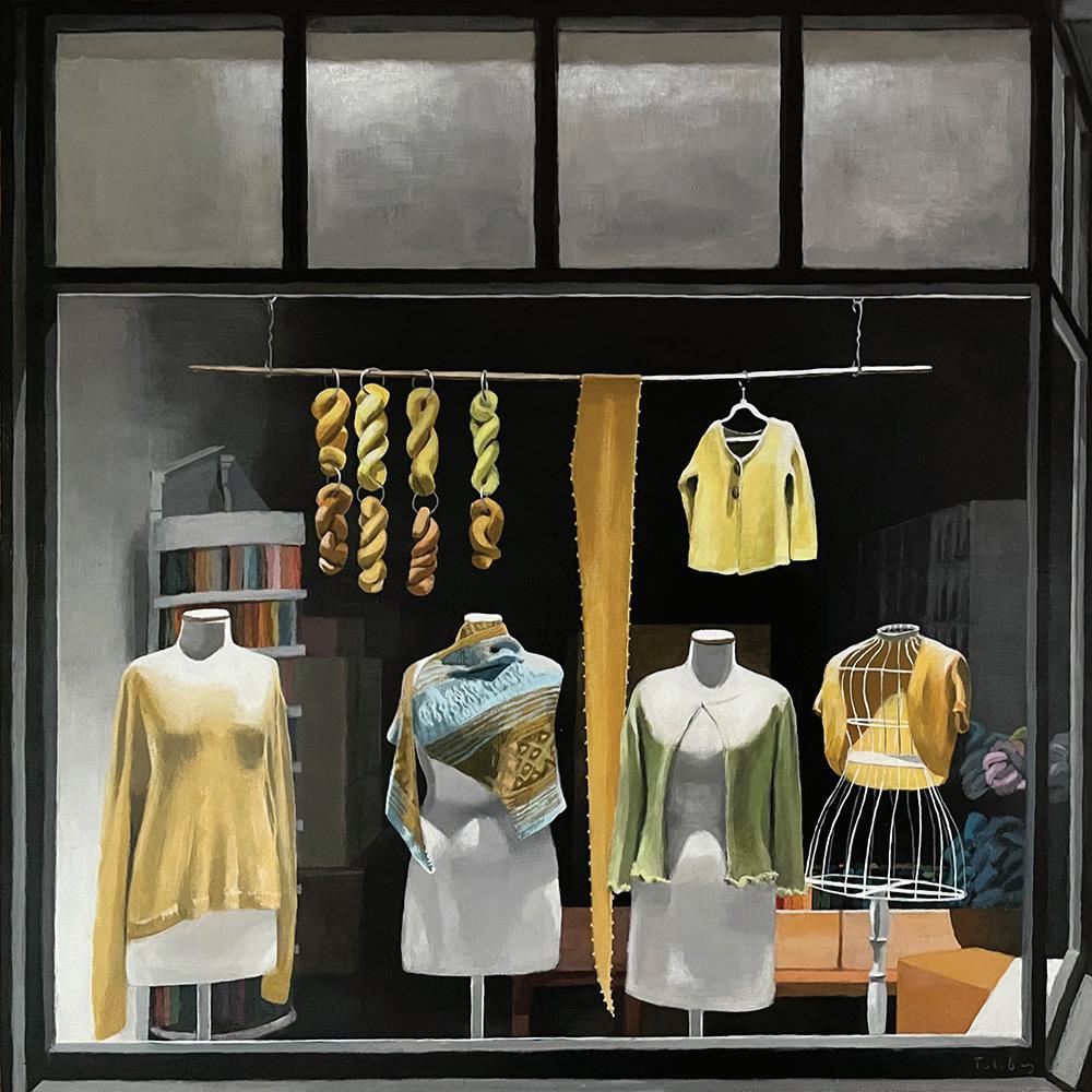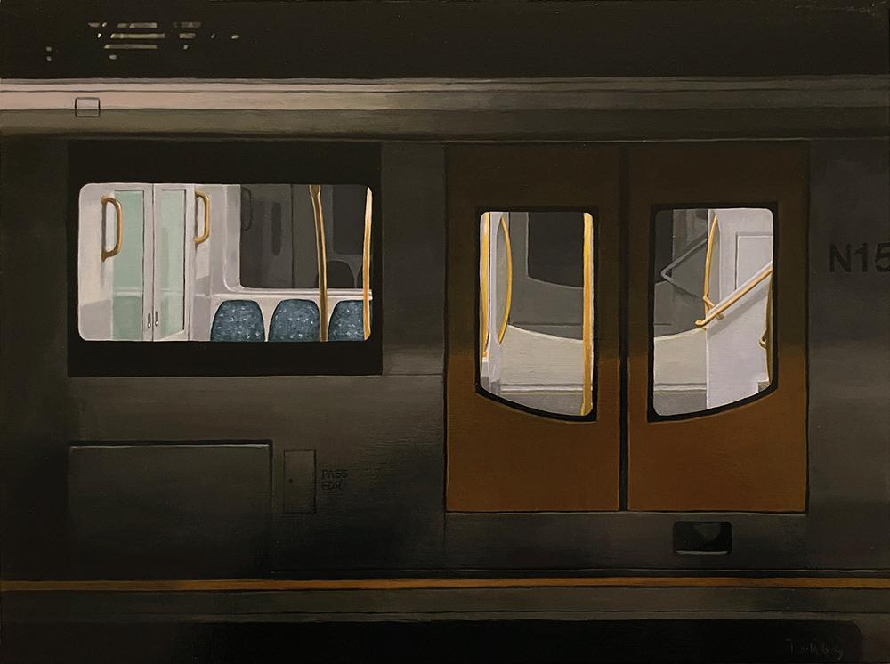 Riddle elevates everyday subjects to the realm of art, imbuing them with a sense of nostalgia and curiosity. The paintings eloquently serve up a calm and evocative glimpse into often-ignored scenes we may pass every day: a telephone box, a shopfront, or a parked car. Mostly devoid of people, the paintings are arresting in their meticulous attention to detail and instil within us a sense of mystery and also familiarity.