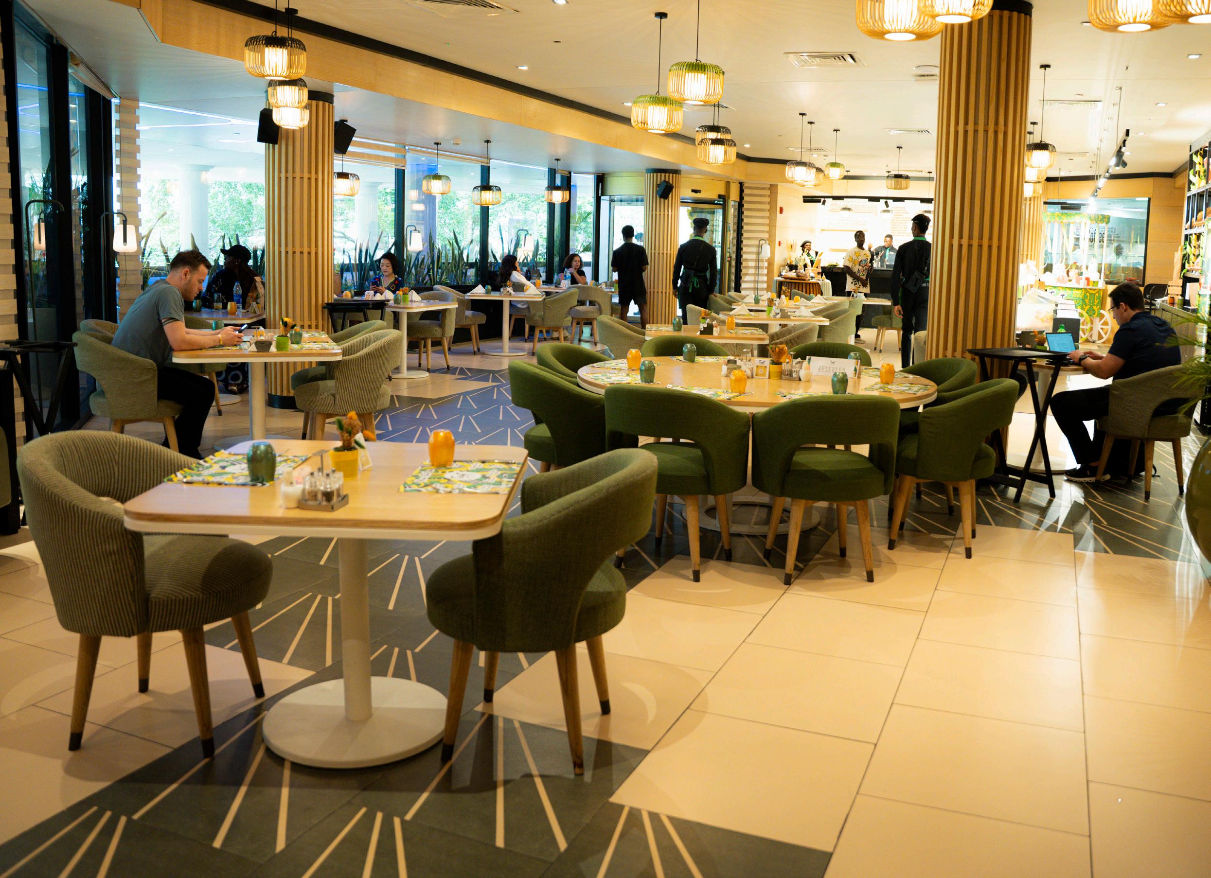 As soon as we walk into the always revolving glass doors, we are bathed in natural light that spills across sexy, stylish interiors. It is spacious, something a lot of Lagos hotspots lack these days. The subtle design details, from the considered placement of greenery to the texture of the furnishings, contribute to an atmosphere that is both chic and welcoming. Plush seating invites lingering conversations over expertly brewed coffee, while the subtle clinking of porcelain and the murmur of contented patrons provide a gentle soundtrack for us. It is not hard to tell that the place was designed for connection. “Whether one wants a quiet corner for a power breakfast meeting or a leisurely afternoon escaping the wave of activities happening in Eko Hotel, this is the place to be,” we are thinking to ourselves.