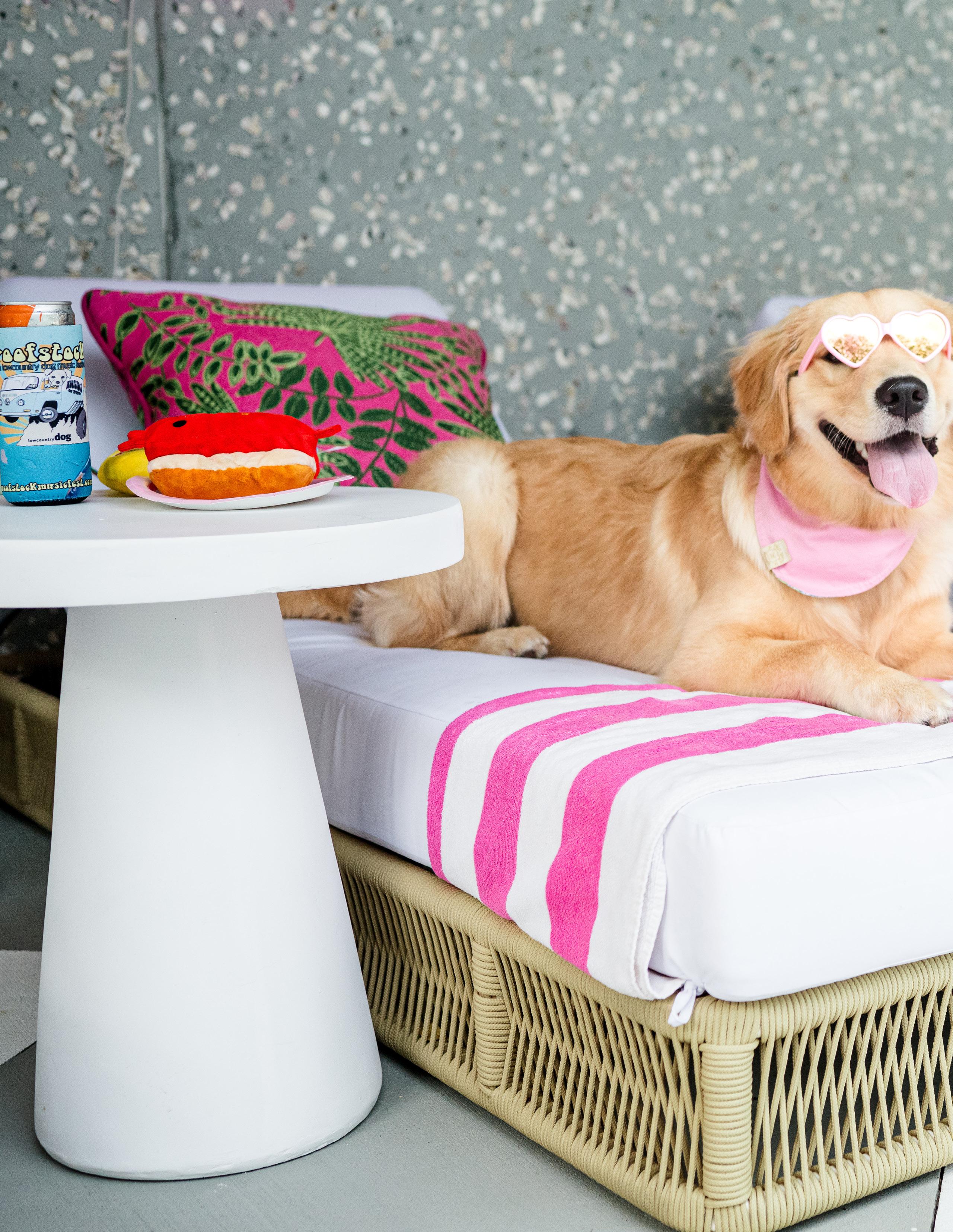 Winnie greeted her guests in her signature pink sunglasses and matching visor—because fashion never takes a day off. From the moment the first pup-pawtini was served, the vibe was sunsetchic meets tail-wagging chaos.