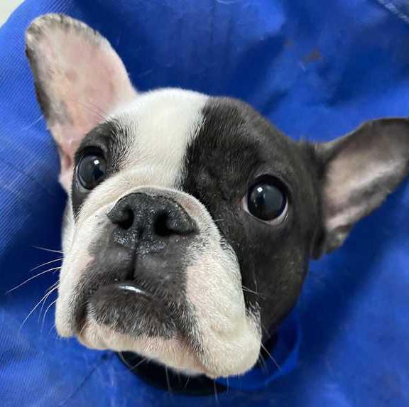 Authorities at the Charleston Animal Society said the dog was abandoned, in critical condition, outside the gate of the facility at about 9 p.m. on Dec. 22.