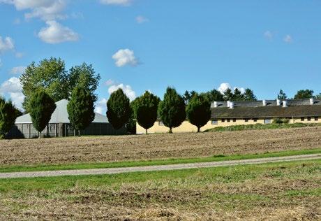 På landet kan man bo på en gård.