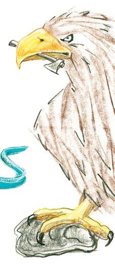 Ørnen Øjvind elsker østers, som han åbner med en økse.