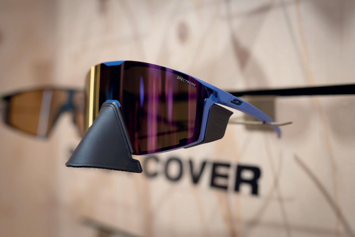 Als we naar de sportbrillen kijken, dan sprong in het FAST & LIGHT-assortiment de INTENSITY eruit. Deze nieuwe fiets en hardloopbril is superlicht en ventilerend, en is verkrijgbaar in acht kleurrijke varianten. Naast de Frequency en de Density wordt dit ongetwijfeld een nieuwe bestseller van JULBO. In het HIGH PROTECTION-segment sprong de nieuwe EDGE COVER het meeste in het oog. De Edge Cover, verkrijgbaar in zeven kleuren, is een futuristische versie van het EDGE-model uit de FAST & LIGHT-serie met neusbescherming en verwijderbare zijkapjes voor maximale bescherming in het hooggebergte.
