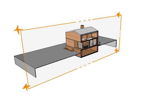 A ferramenta Plano de seção (Section Plane) é um recurso poderoso do SketchUp. Em tempo real você pode cortar seu modelo em qualquer posição ou ângulo. Você pode criar quantos planos de seção quiser; entretanto, o SketchUp só permite ativar um plano por contexto. Para usar dois cortes simultâneos, a dica é agrupar o modelo junto com o plano de seção, e aplicar um novo plano de seção por fora do grupo.