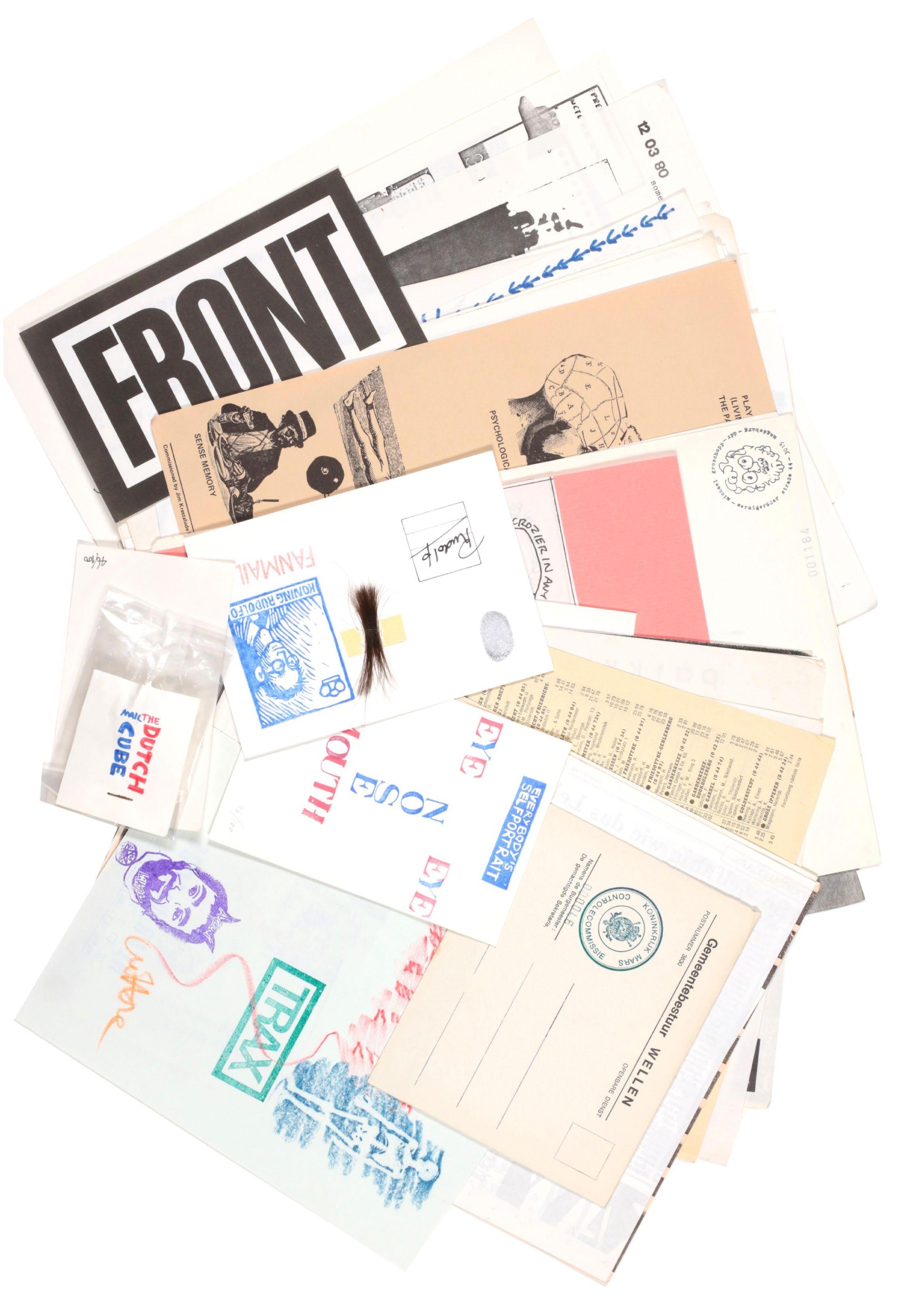 40 contributions, mostly on xeroxed sheets, others collaged or printed, or with unique elements. Each contribution stamped, some contributions signed.