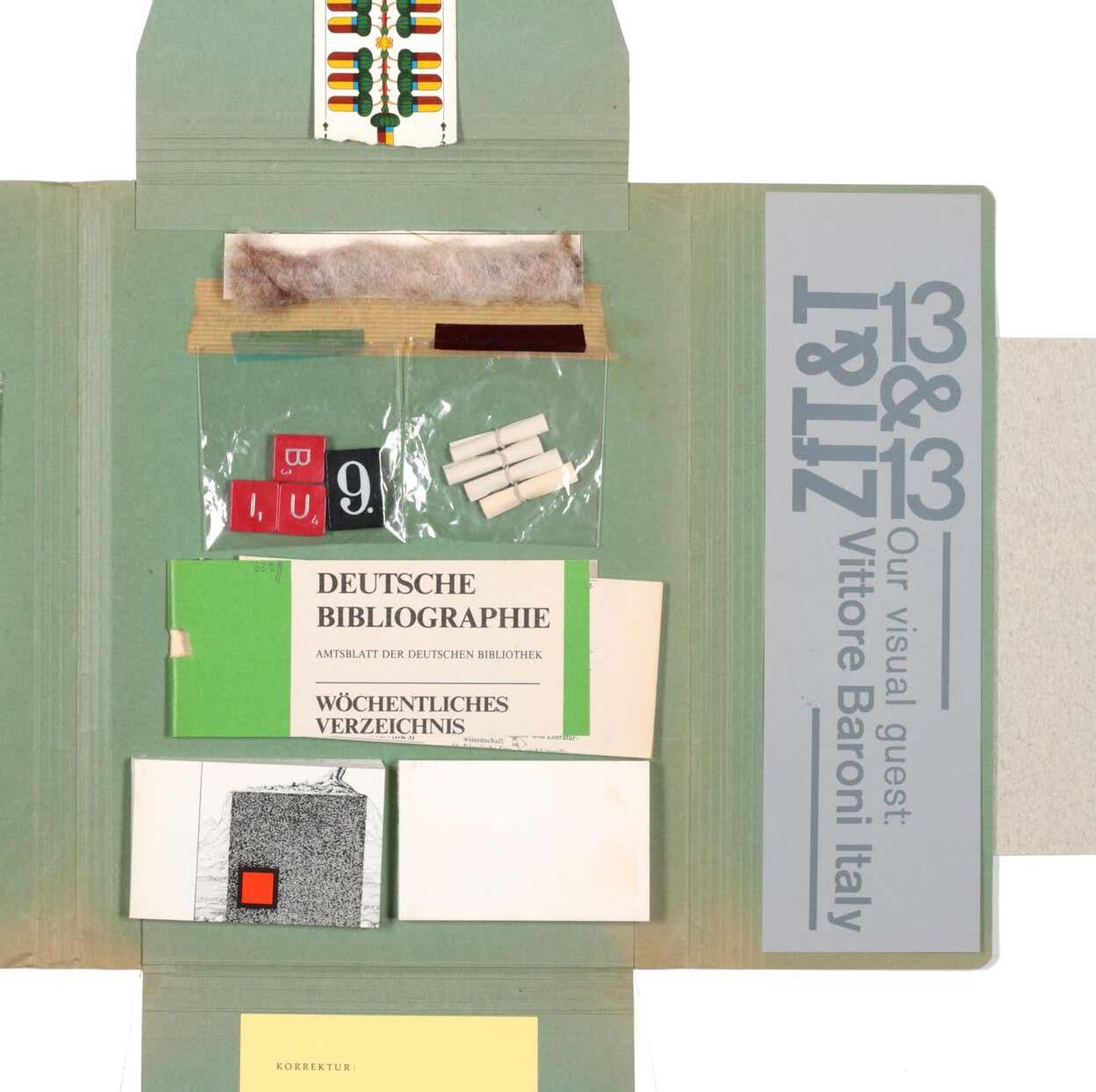 The visual guest to this issue is Vittore Baroni (Italy). Wolfgang Luh and Jürgen O. Olbrich initiated the artists’ publication Zeitschrift für Tiegel & Tumult in 1986. It was published four times a year in Kassel, each issue in an edition of 150 copies and produced in collaboration with an artist. In addition to a special thematic focus and the visual guest, the publications are known for including a range of inserts, from readymades, sealed objects to more conventional printed matter. Booklets and various elements glued within, including scrabble pieces, book sections and pasted labels.